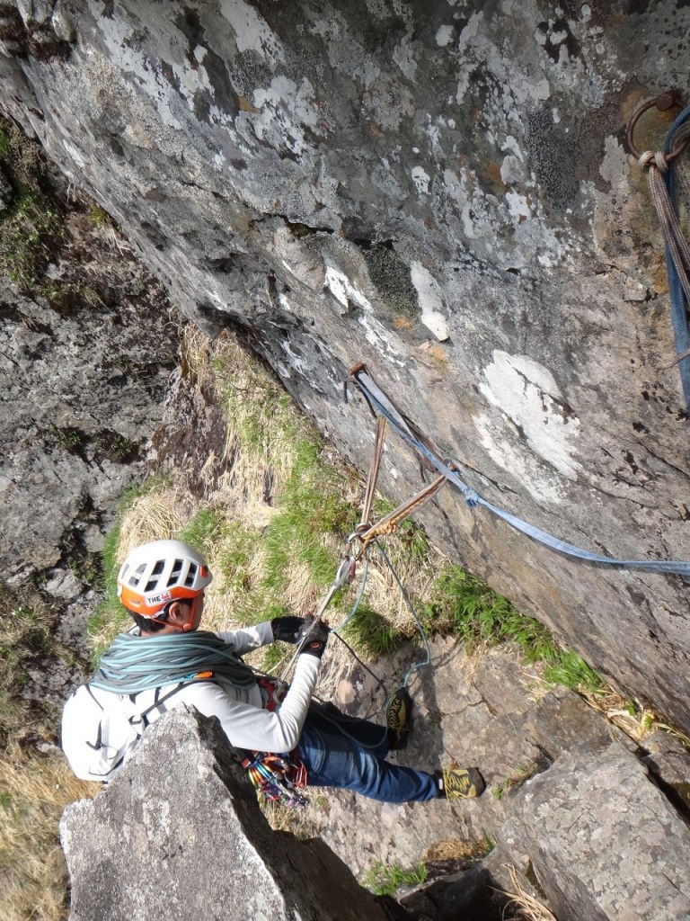 ・リングボルト3つの終了点をスルーして次の終了点でピッチを切りました。(5P目のチムニーが見えるところにある終了点。)