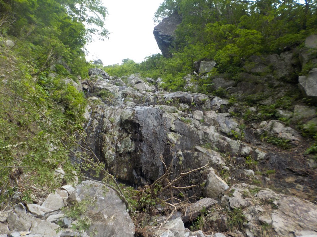 ・衝立前沢はクライムダウンを交えながらフリーで下り(トラロープがフィックスしてあるところが右岸側に1箇所あり)、終盤に50mロープ1本で懸垂下降を1回しました。(トポではロープスケル20m)
