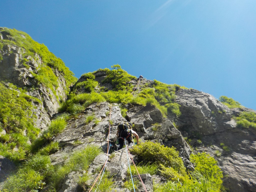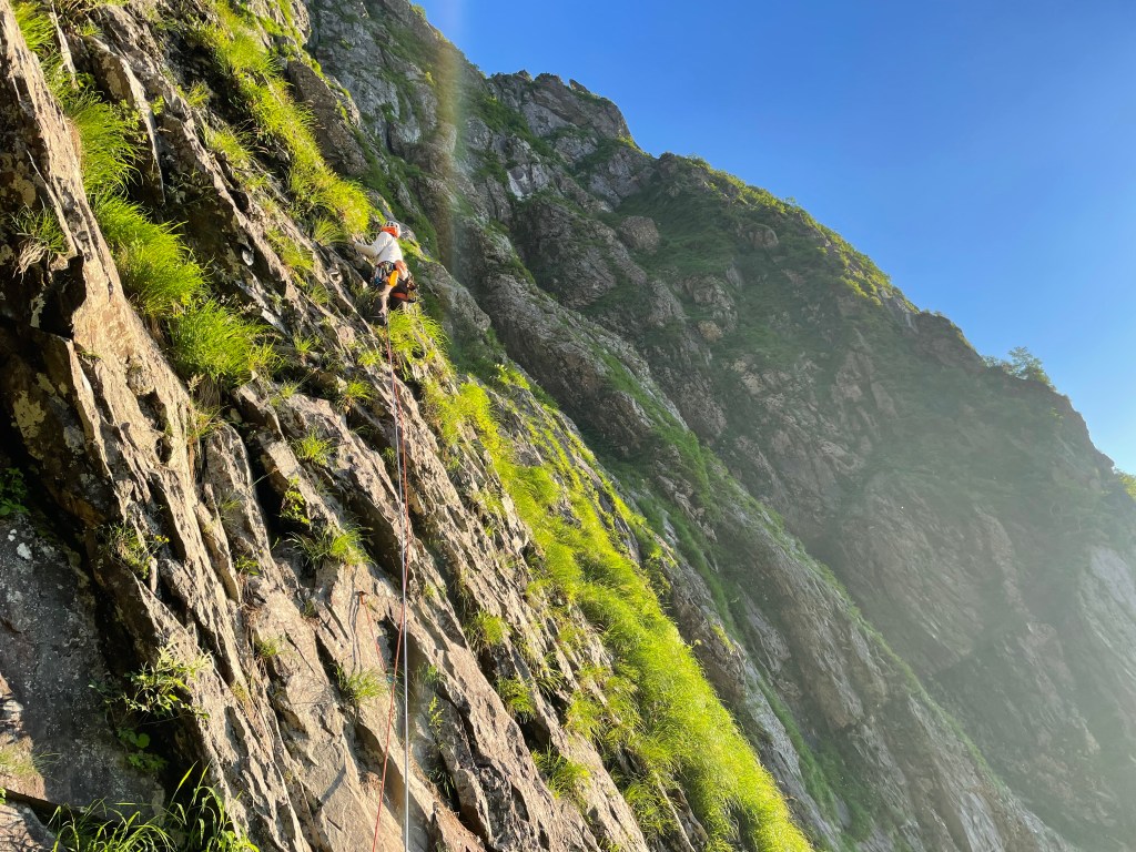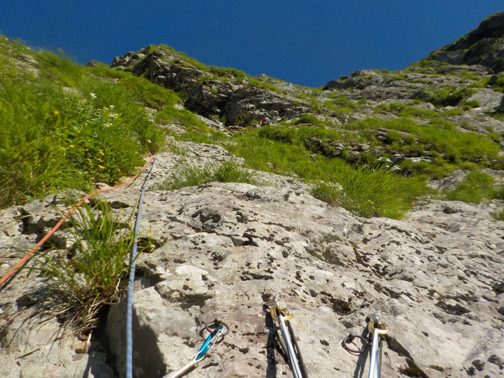 2P 草付凹状部を左上~フェースを右上 Ⅴ 40m(フォロー)