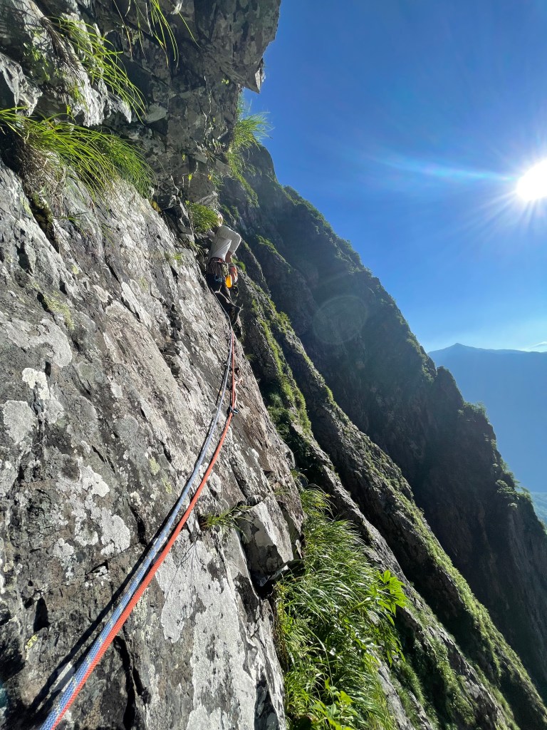6P 馬の背リッジの途中~垂壁(南稜のルート) Ⅳ~Ⅴ 20m+20m(フォロー)