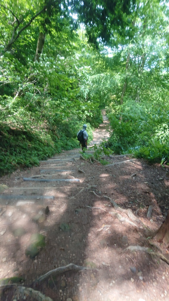 ・呑み水の滝を登ると二俣に出合う。二俣は左へ行き、50m黒滝をフリー登りその後しばらく歩いて遡行終了。2~3分程度の藪漕ぎで登山道6合目少し上に合流する。