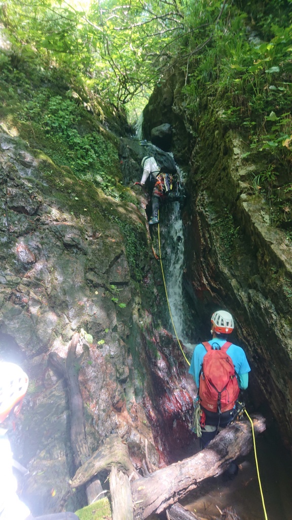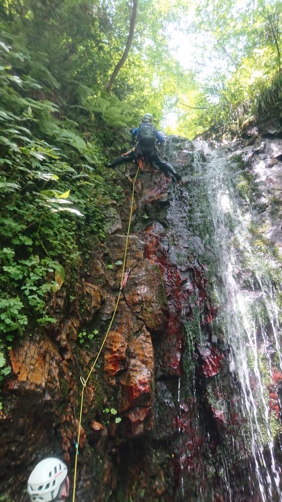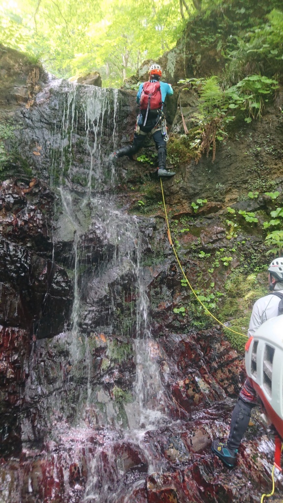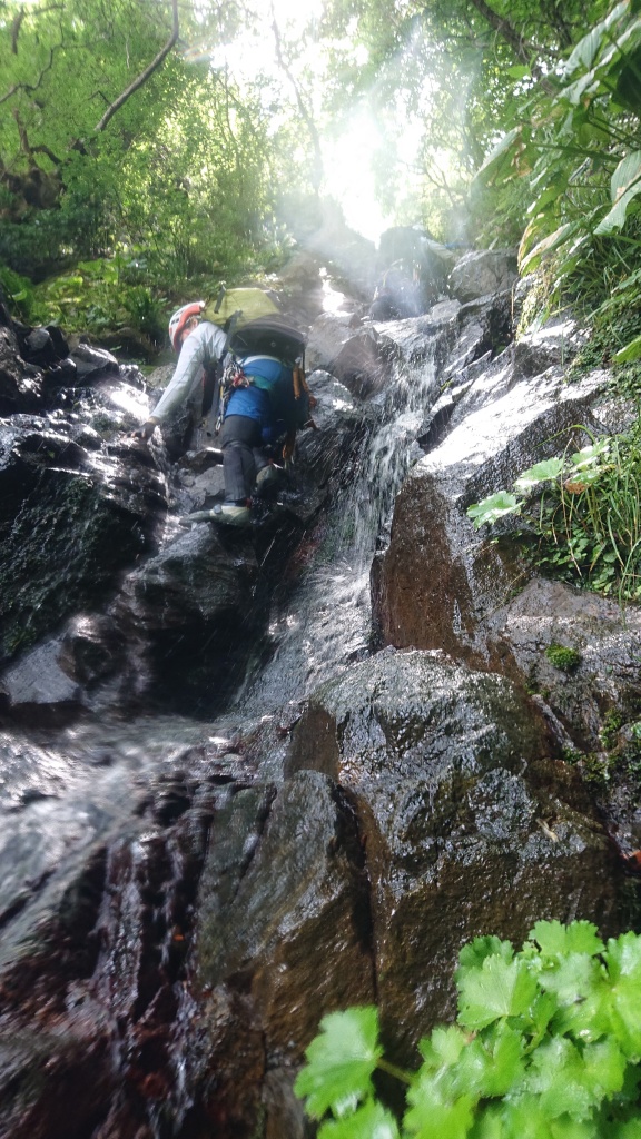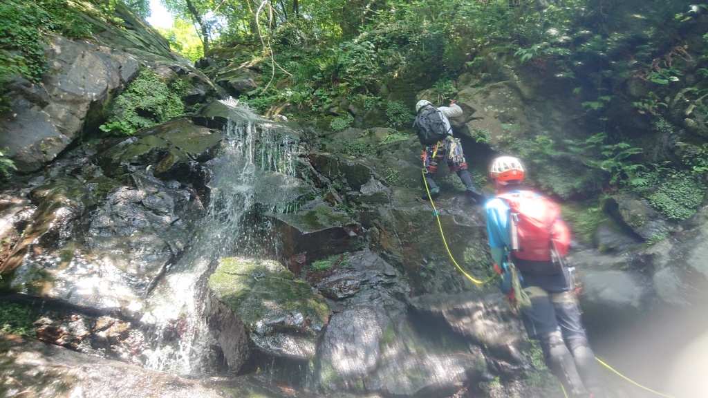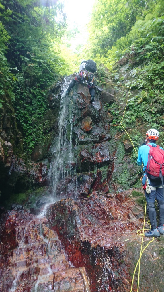 ・ロープを使って登った滝は6本。(2つ目の滝は山宮、赤滝は神蔵がリードでそれ以外の滝は進藤みがリード。中間者はタイブロック又はマイクロトラクションを使ってのプルージック登攀、最後尾はフォローで登攀。)