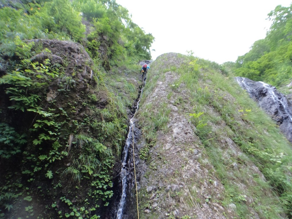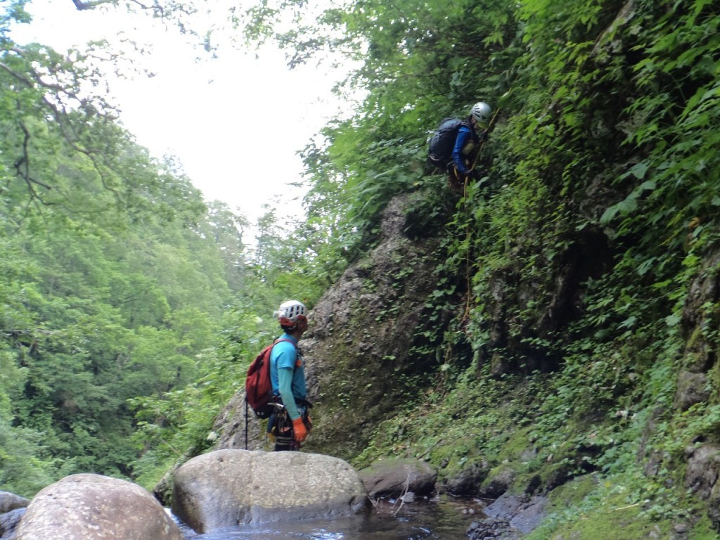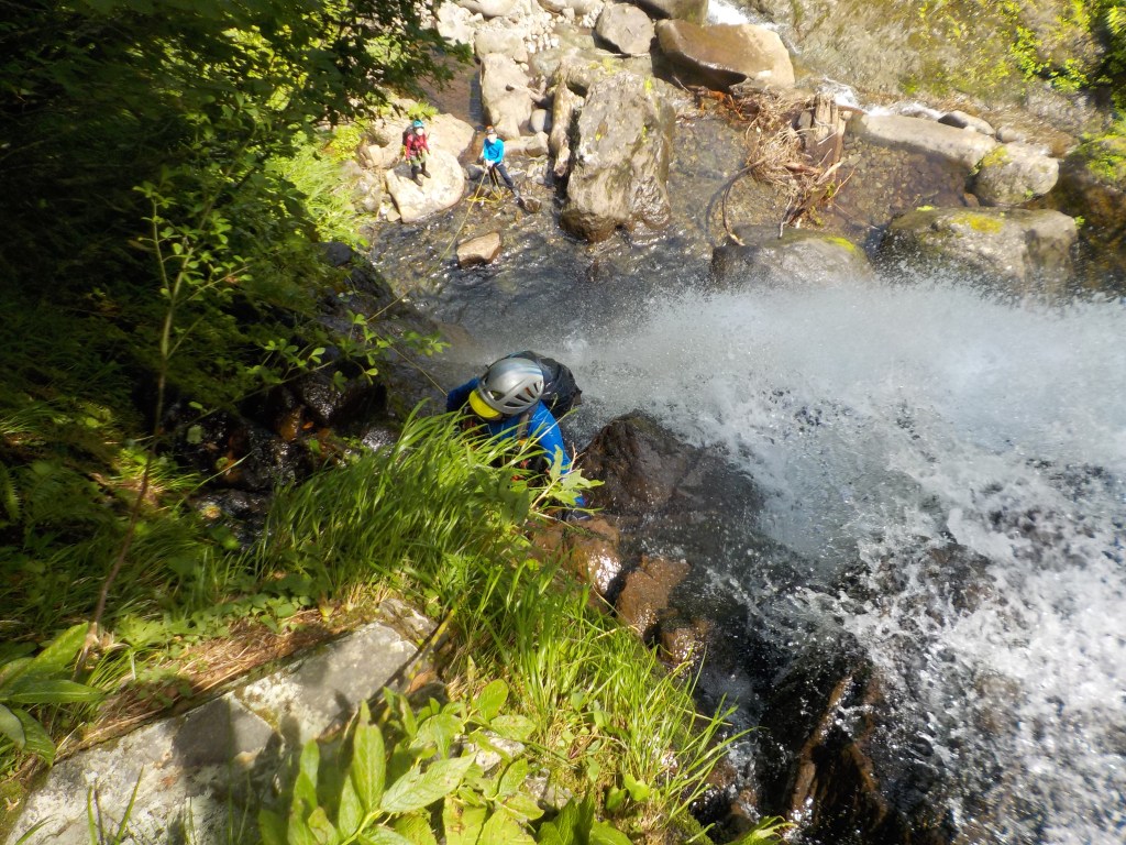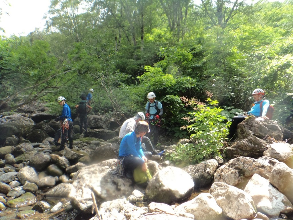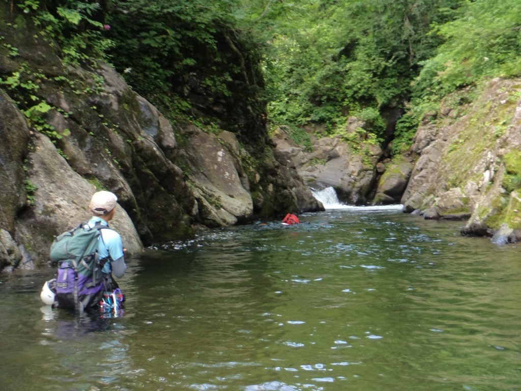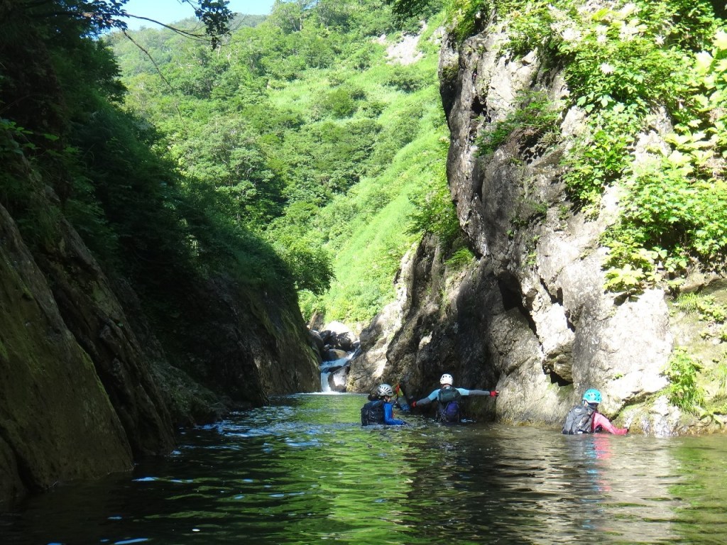 (神蔵)沢登りを始めてから3年目、初めての3級の沢。序盤の泳ぎが核心かなと思っていましたがフリーで登る滝と高巻きが一番緊張しました。軟弱なので際どい場面では躊躇なくお助けを要求!手厚いサポートのおかげでなんとか突破出来ましたが終盤までシビれる沢登りでした(付いて歩くだけのお客様ですが…)。弱音連発のわたしと違い淡々と進むまり子さんの姿と道中の励ましの言葉は心強く支えになりました。ハイライトの三ツ釜の滝は到着する頃には日差しもいっぱいでキラキラと感動の美しさ。沢日和で楽しい1日でした。メンバーの皆さま、ありがとうございました。