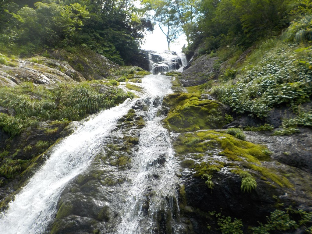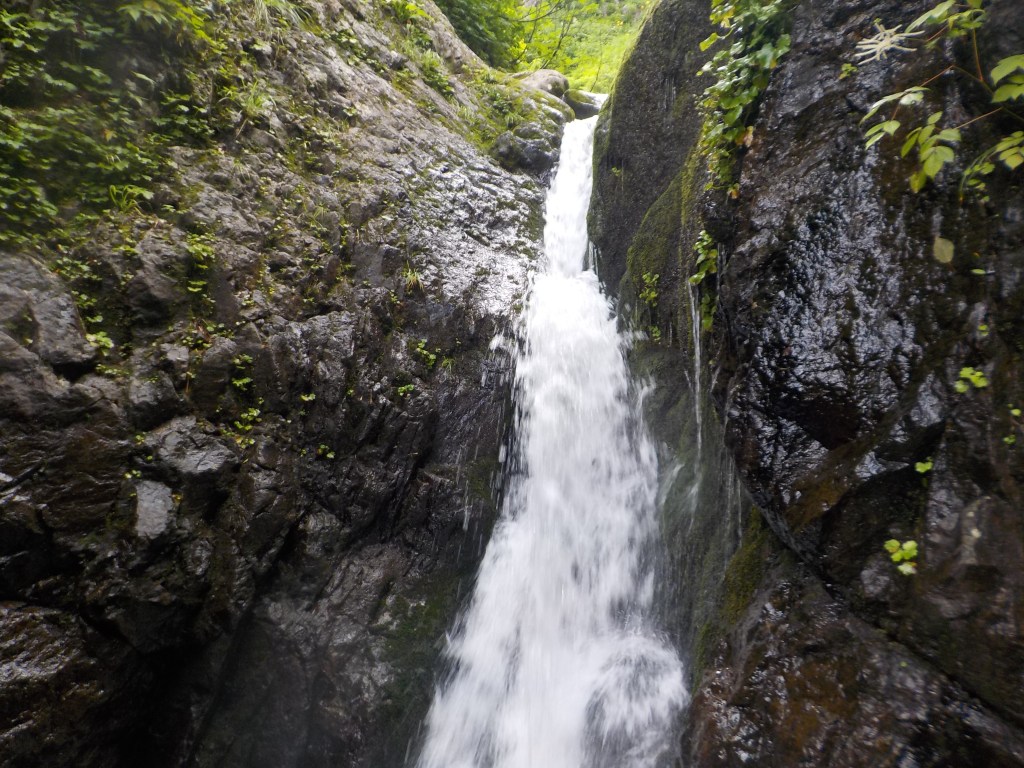 (進藤ま)今回は泳ぎのある沢だったのでドキドキでしたが…1回目は死ぬ気で飛び込み(流れもなくロープありましたが…😅)何とかなりましたが飛び込んだ時にコンタクトがずれたので今後はゴーグル必須だと思いました。2回目は飛び込まず顔を浸けずに泳いだら思ったよりスムーズに泳げたので良かったです♪今回はラバーにしましたが茶色い苔?が滑り…(岸畑さん曰くどちらでも変わりないよって…)何時もより慎重に歩き疲れましたが三ツ釜大滝や美渓滝などスゴイ素敵な景色を堪能でき参加して良かったです♪いつも後ろで見守ってくれた岸畑リーダー、率先してズンズンと進んで皆を安全に誘導してくれた山宮サブリーダーや色々な場でお助けを出してくれた参加者の皆さんありがとうごいました。今後は泳ぎの沢も少しずつ行ってみたいなと思いました。