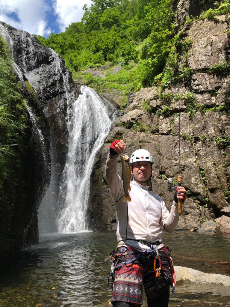 (進藤み)前半の釜川の巨岩帯塑行が地味に足にきます。しかしそれを補うくらいの三ツ釜大滝の絶景やヤド沢に入ってからの釣り最高でした。何時ものごとくはしゃぎ過ぎの為、脱渓する頃にはヘトヘトで下山時は膝にきました。今回はリーダーの岸畑君サブリーダーの山宮さんに任せっきりでお気楽に楽しませてもらいありがとうございました。暑くもなく寒くもなく虫もなくとても楽しい一日でした。次回は泊まりでもいいかも♪
