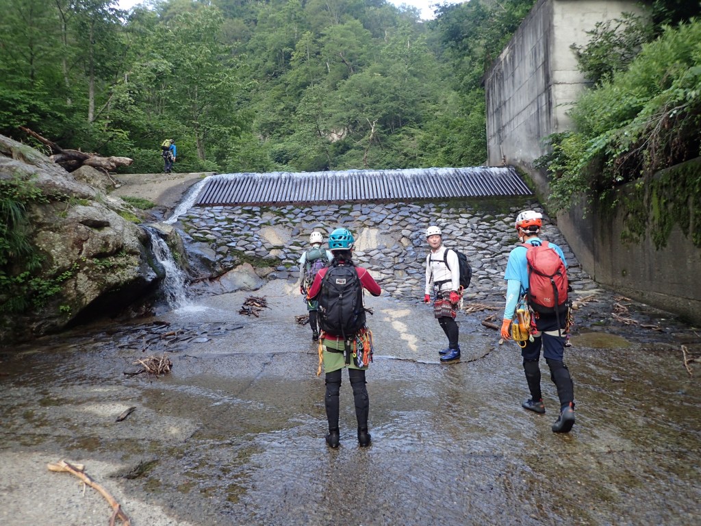 (山宮)7月の例会で計画が上がり月末の週末に行くことになった。6人と大人数でしたが時間もかからず良かったです。釜川ヤド沢は2回目でしたが、この日は虫もほとんどいなくて水も冷たくなくて快適でした。リードで登った滝は難しく感じませんでした。(今シーズン購入したサワーシューズ28.0cmは3回使用しましたがサイズが大きく細かいのに乗れないのですっぱり諦めて27.0cmの新品を購入して今回投入、また登攀力も昔より成長してるんだと思います。)