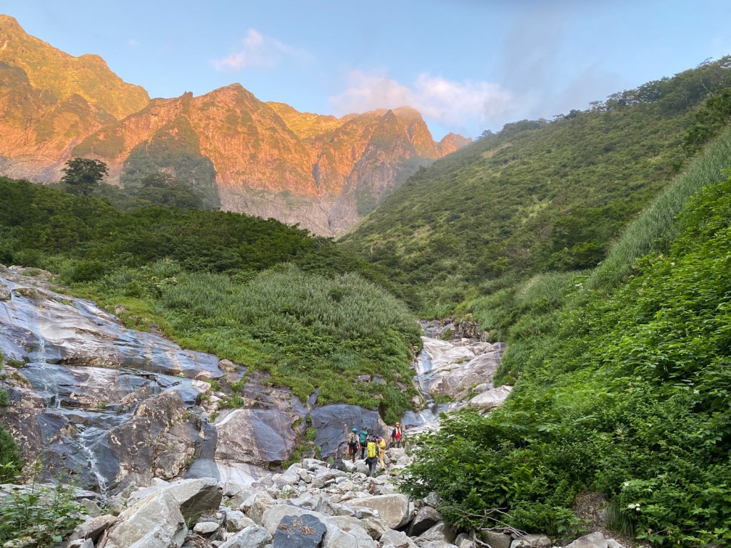 ・幽ノ沢出合~カールボーデンまでは沢登りになるので靴はアプローチや下山でも履けるラバーの沢靴が良いと思います。(今回アプローチシューズは9人中2人)
