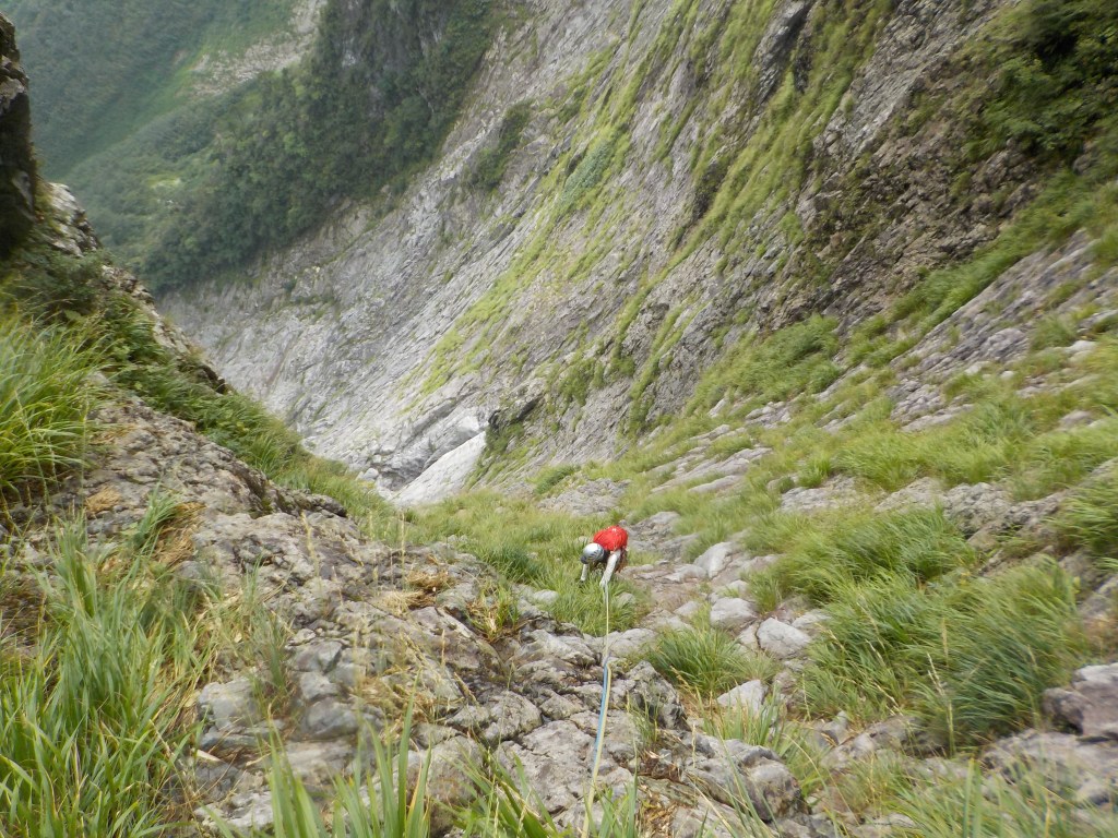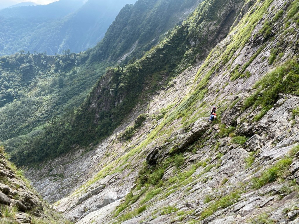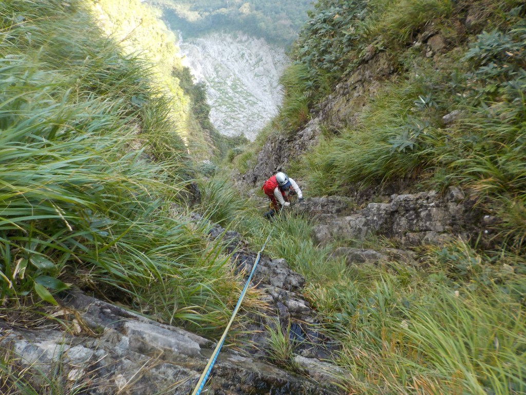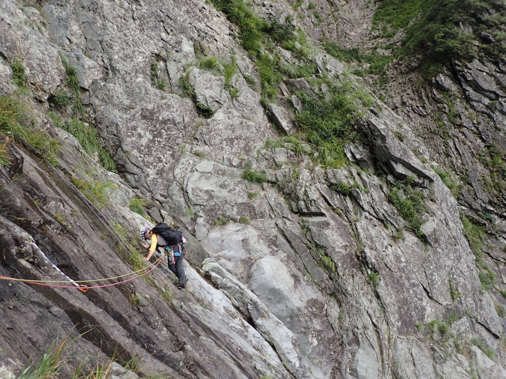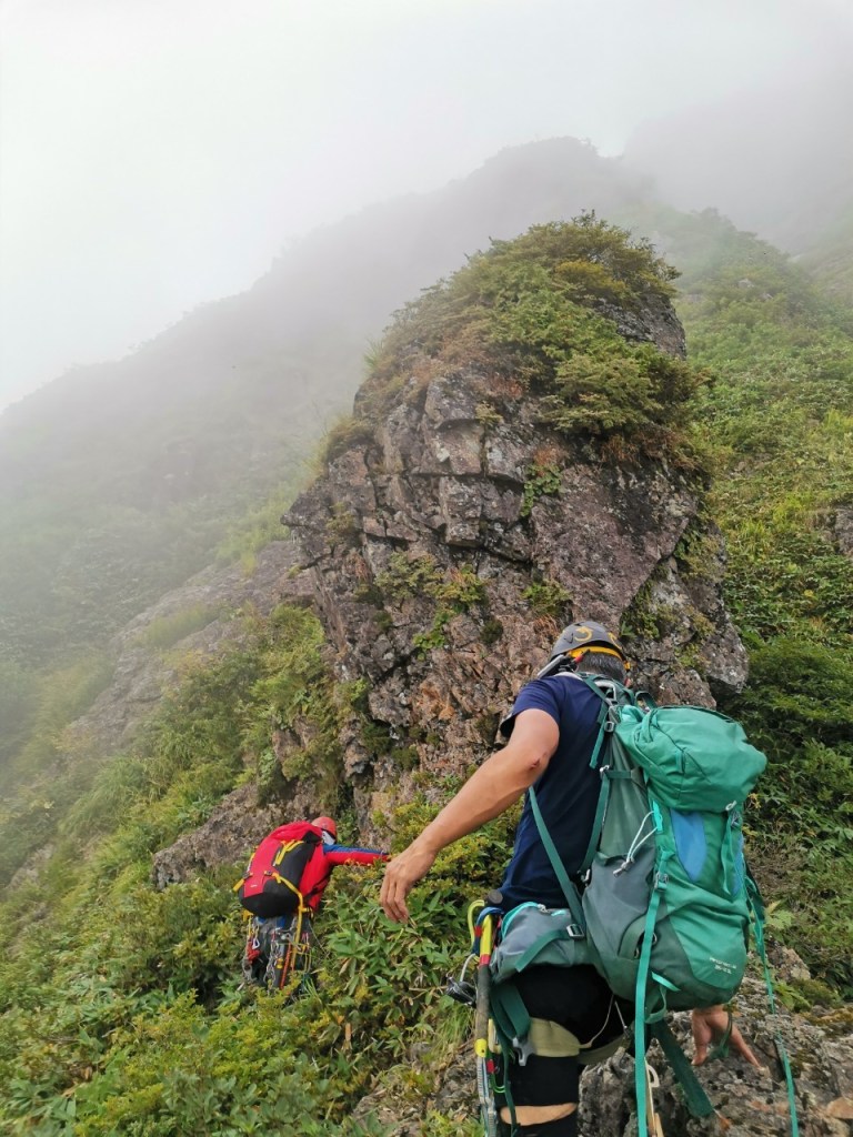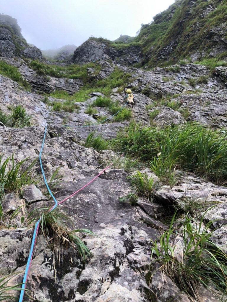 ・今回、取付テラスは草に隠れていて見つけにくかったです。見逃し注意!!(中央壁右フェースルート取付の残置スリングの付いた支点がリッジ状の真上によく見えていて『そこが取付きテラス?』と間違えそうなので注意!)