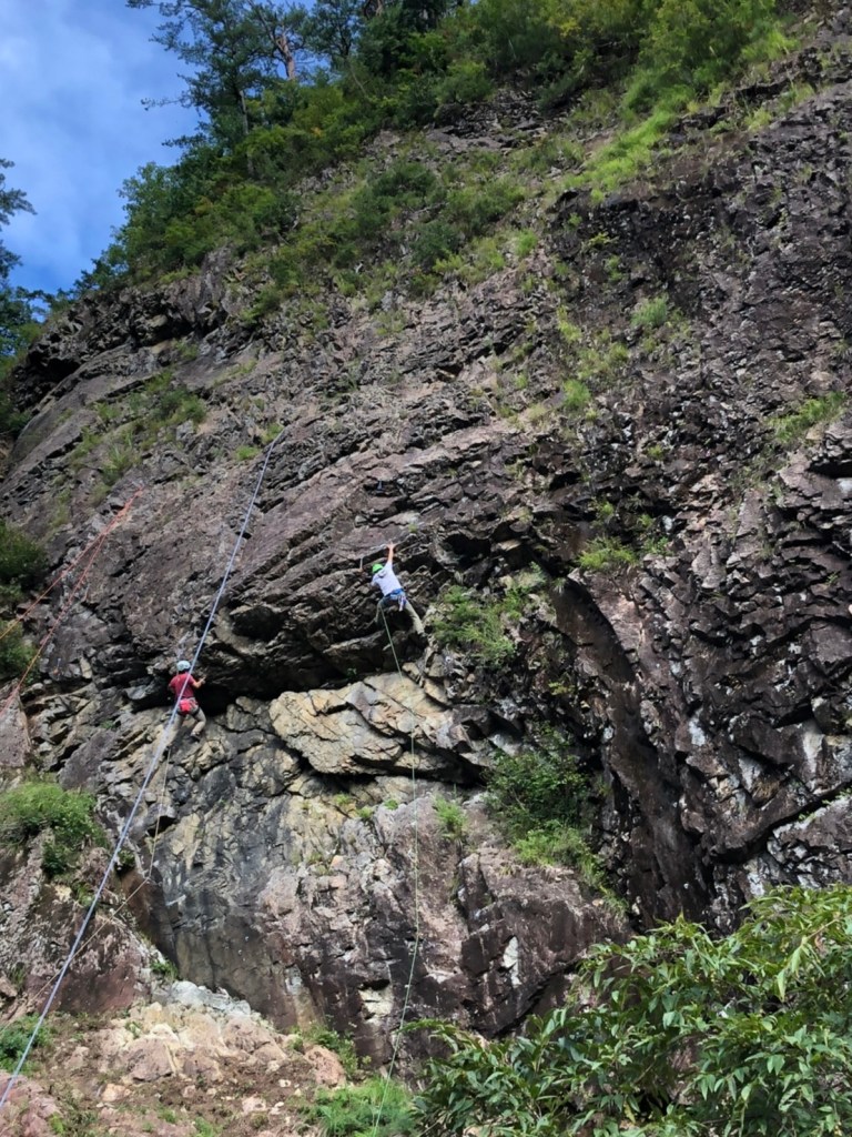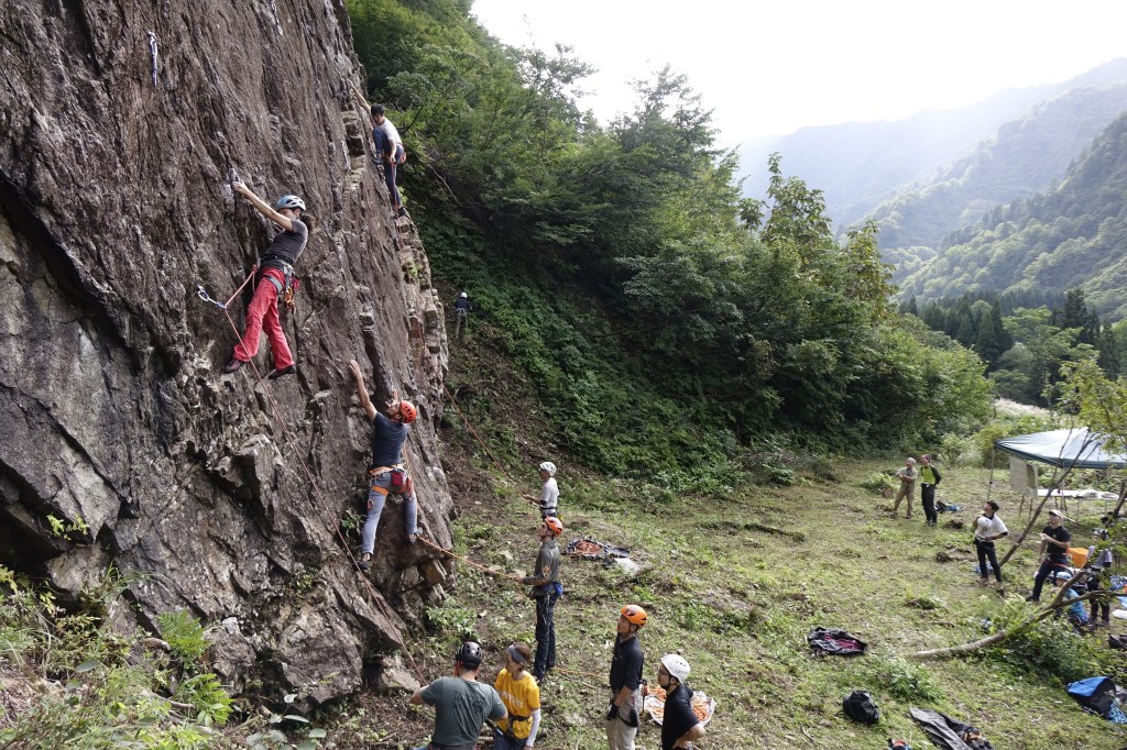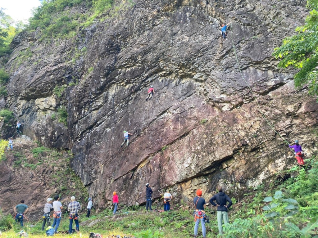 ★感想:(山宮)9/25(日)は梅花皮岩の公開イベントに行ってきました。公開イベントには約30名が参加して初めての岩場のフリークライミングを楽しみました。(新潟からは山岳会メンバー6人と他2人の計8人で参加しました。)