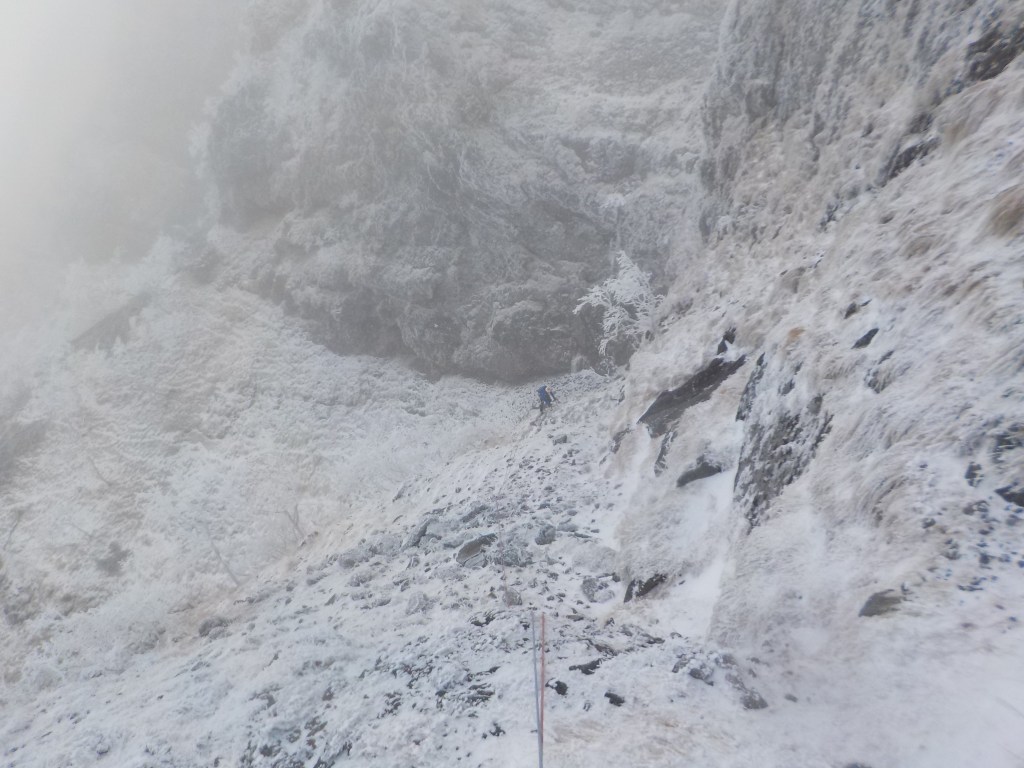 ★感想:裏同心ルンゼの氷は12/7は良い感じに育っていてルートを選べば快適に登れました。大同心正面壁雲稜ルートは初見なのに雪が付いていて難易度アップ。A1のところはドラツー&フリーで登れるかな?と思ってましたが、そんなに甘くはありませんでした。フォールしたくないので素直にA0、A1で登りました(笑)裏同心ルンゼはソロの方が先行してましたがF3で先を譲っていただきその後は先頭で上まで抜けました。大同心正面壁雲稜ルートは貸切でした。平日八ヶ岳は待ちが無く快適でした(笑)稜線上はガスってましたが時折青空も見え、風は大同心ドーム以外はそこまで強くなく冷え込みもそこそこで登攀日和でした!!