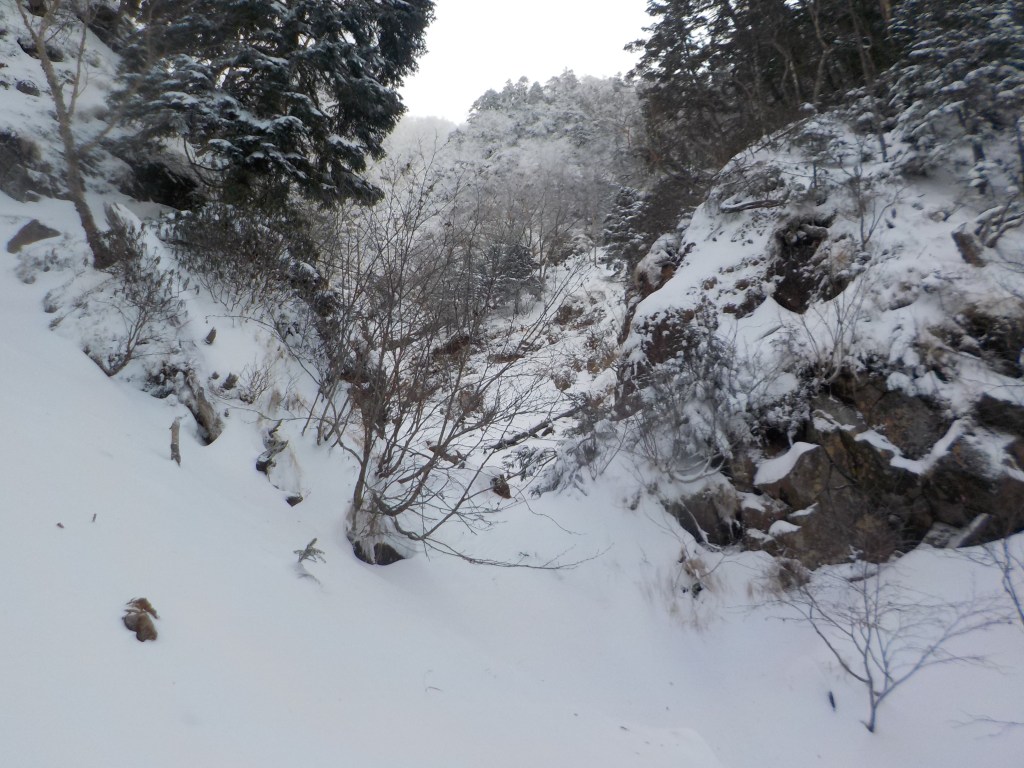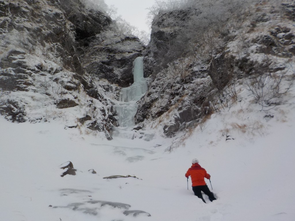 ・大同心沢はノートレースで大同心大滝までラッセルで時間がかかりました。小滝手前~大同心大滝基部までの雪は締まってなくて場所によっては胸まで潜りました。(大同心大滝が見えていてあと少しと思ったので面倒がってワカンを使わなかったのですが結果的に時間ロスだったのかな?せっかく持っていったのに・・・進藤みさんは忘れて持ってきませんでしたw)
