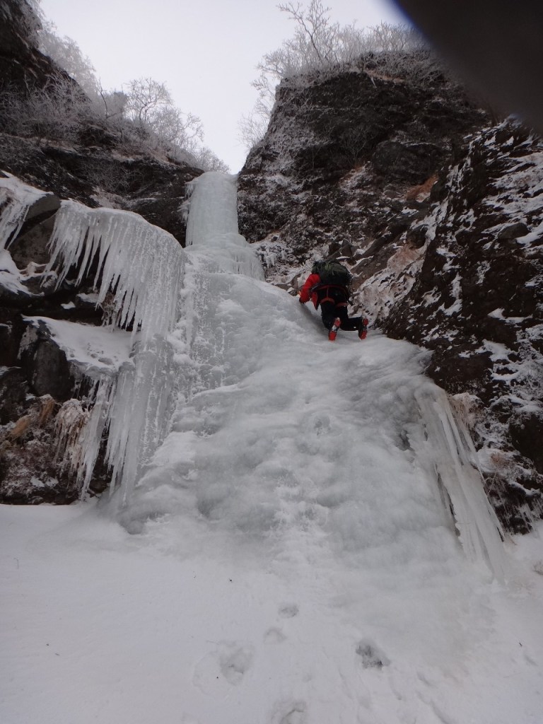 ・大同心大滝は普通に登れる状態でした。ただ刺したアイスアックスを抜くと水が噴き出したりする箇所もありました。(氷の厚さはあったのになぜ?)