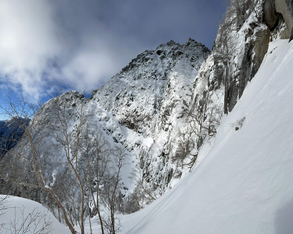 ・赤石沢奥壁の取付まで行ってみましたが中央稜の取付は雪でどこかわからず下山後写真で答え合わせをしました。(雪で1P目は半分ぐらい埋まっていたと思われます。)