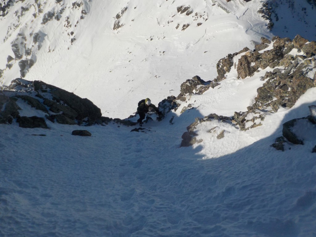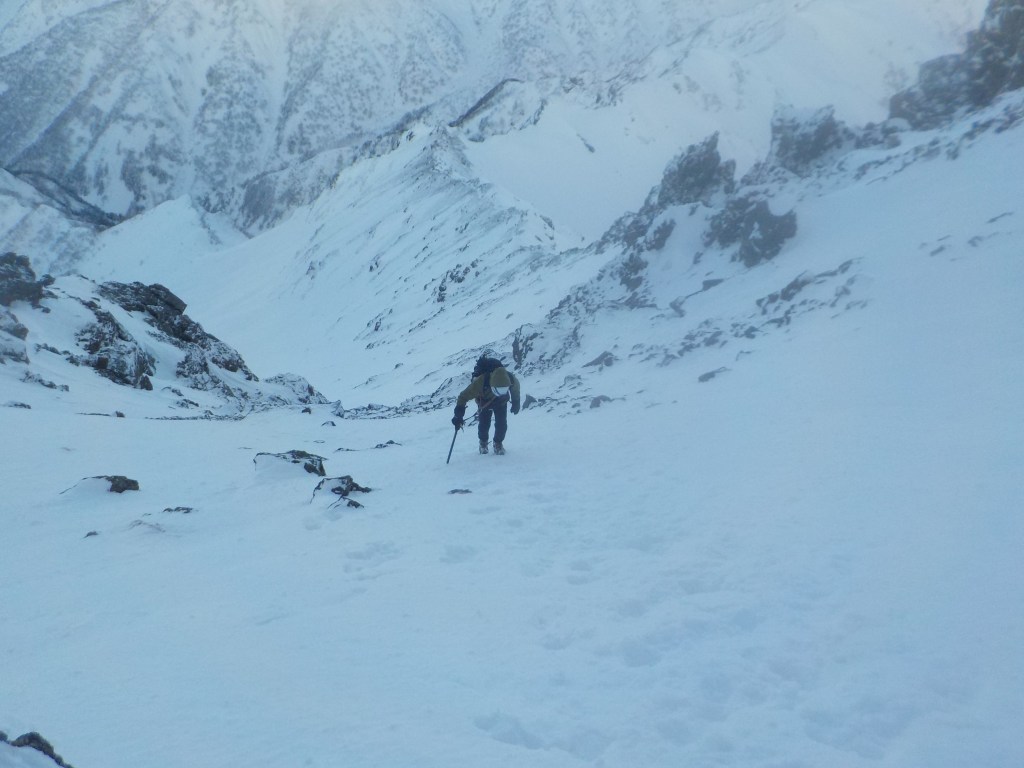 ・飛騨沢はトレース無し。(スキーのトレースは有り。)雪崩れる感じはありませんでしたが膝から太ももぐらいまで潜りながらの下りでした。