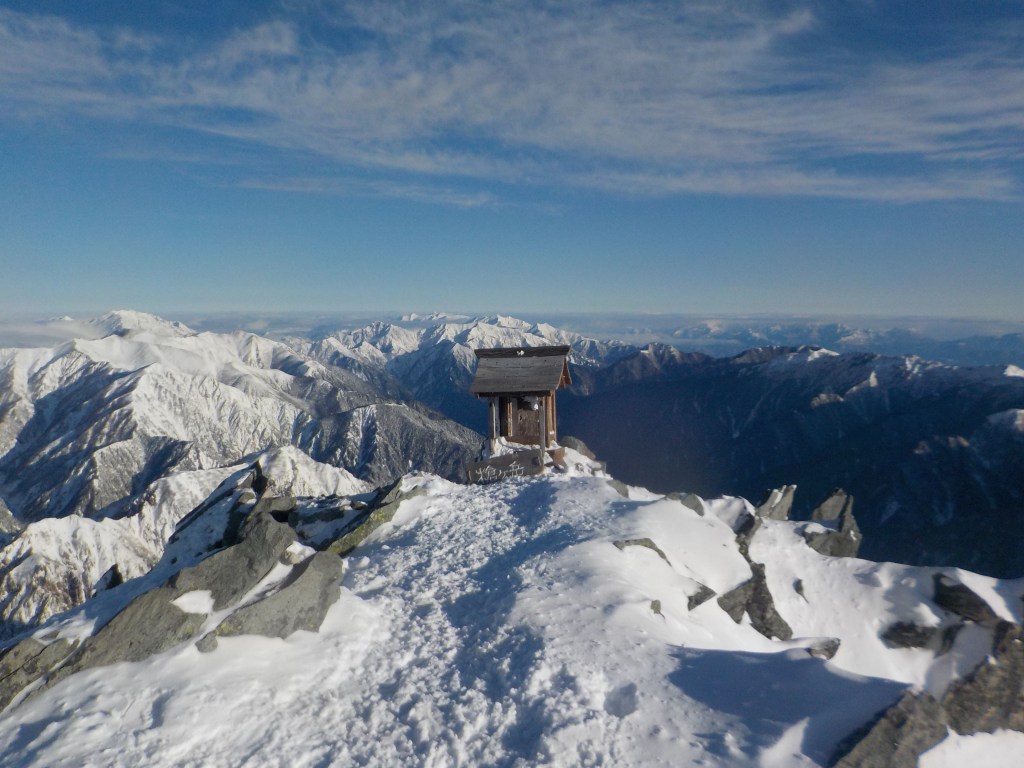 (山宮)今年の年末年始の山岳会山行は12/29~31で槍ヶ岳へ雪山登山に行く計画を立てました。雪山が嫌いなせいなのか年末が忙しいせいなのか分かりませんが毎年参加メンバーが少ない年末年始の山行。今回も計画では4人だったのが事前2人が不参加となり私と新島さんの2人になったので日程を1泊2日に変更して行くことにしました。結果的にアタック日を天気予報の良い12/31に変更して正解でした。無事に登頂でき良い景色も見れました。計画では大喰岳西尾根をピストン予定でしたがトレースが無いと地獄なので無難にトレースがありそうな中崎尾根からのルートに変更して登りました。そのおかげで槍ヶ岳の山頂まではトレースがあり楽をさせてもらいました。(ラッセルされた方々ありがとうございました。)下山は飛騨沢から槍平までラッセルで疲れました。(ワカンが欲しかった。。)新島さんは夏冬通じて初の槍ヶ岳の登頂になりました!良かったですね!