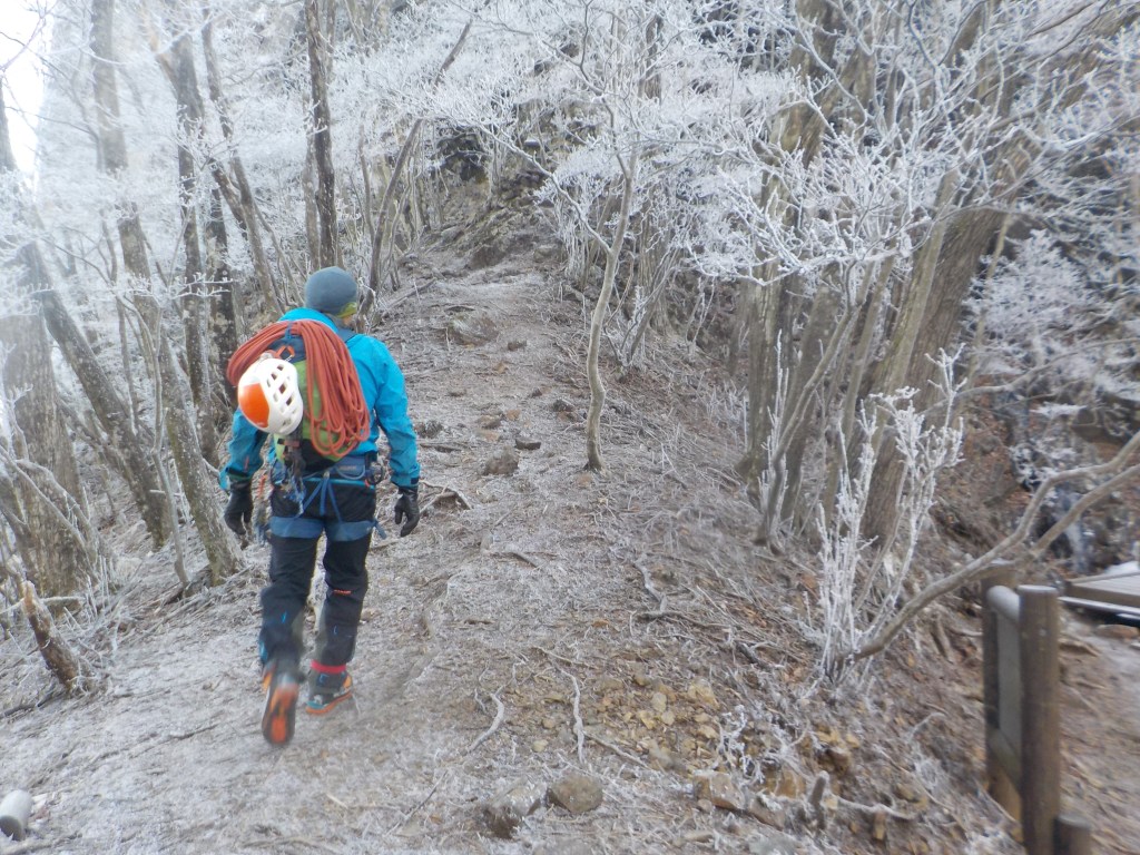 ・内山峠の荒船山登山口から一般登山道を登っていき、一杯水のところから一般登山道を外れて左へ進路を取りしばらく歩いていき攀船記の取付を過ぎて更に奥へ歩いていくと昇天の氷柱の取付に到着します。