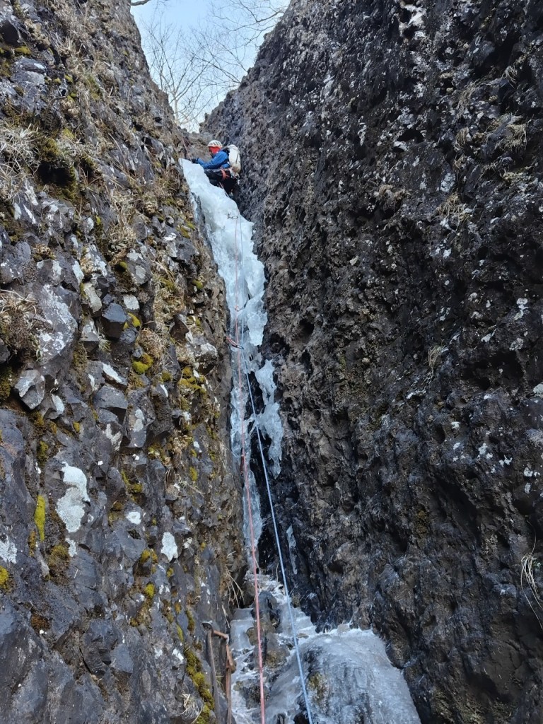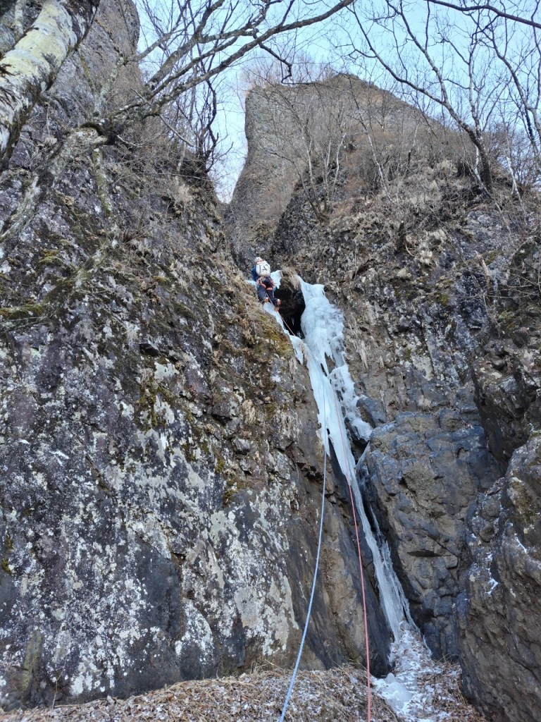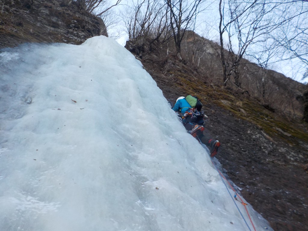 ★感想:先週末の暖気と雨の影響で何処の氷も芳しくない状態になっているとの情報があるなか1/19(木)はWさんと昇天の氷柱を登ってきました。氷が無くてオールドライ登攀になるのかな?と心配してましたが氷は全4ピッチともありました。昇天の氷柱は今回で2回目。今回は偶数ピッチをリードしました。(前回は全ピッチリードで登攀)