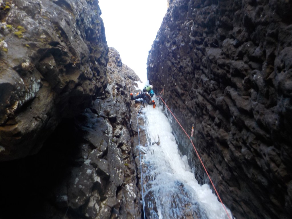 ・終了点は3P目のから少し下にあった氷にアイススクリュー2本で構築。(3P目をリードが登るときにはこの上の氷の無い平らな場所でセルフは取らずにビレイ。)