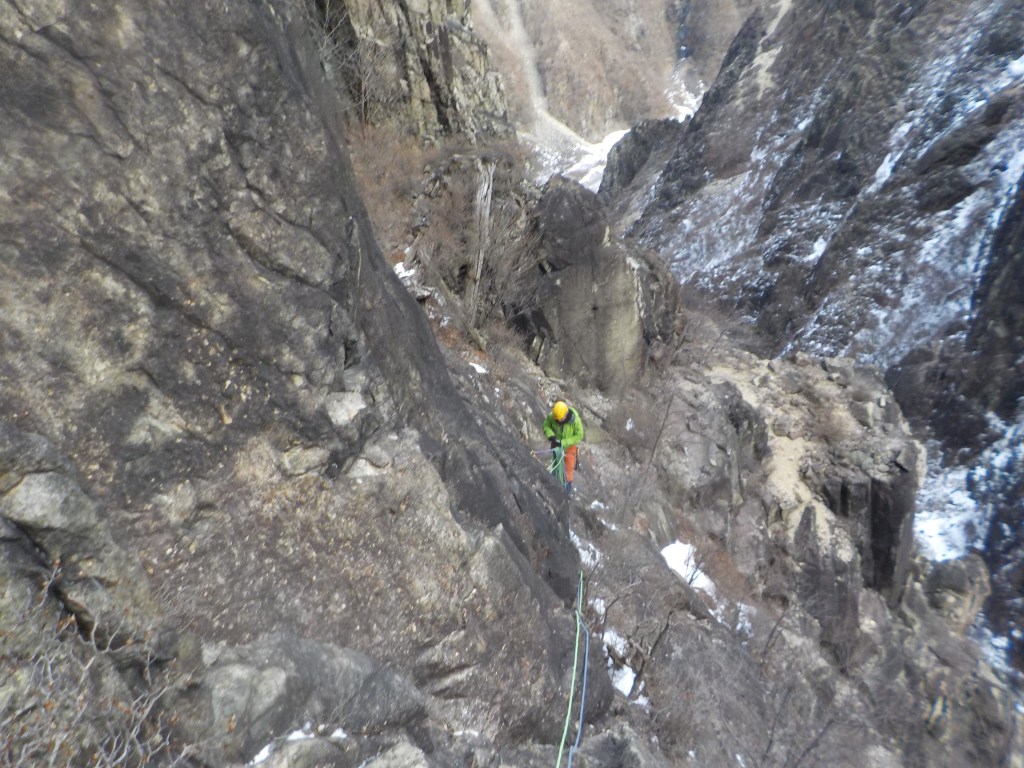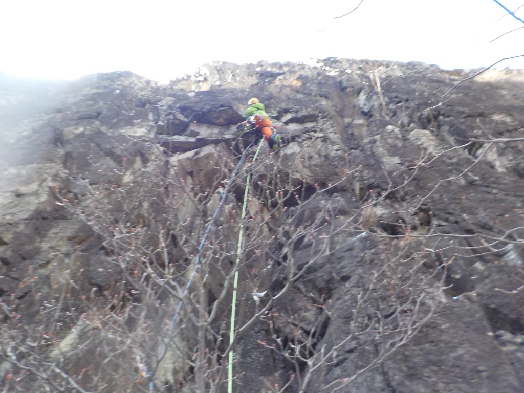 ・アックスはほぼ使わずにグローブメインでの登攀でした。(雪が付くとアックスを使わざるをえないと思うので難易度が数段アップすると思います・・・)