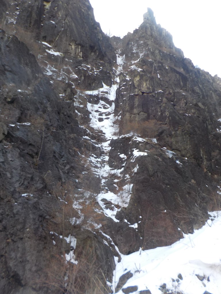 ・前回登った時はクライミングシューズでバック&フットで快適に登れましたがアイゼンではなかなかしんどかったです。(狭く感じました・・・)中間から上部にかけて若干被っているところもあり体感ではⅣ+~Ⅴ-といった感じです。