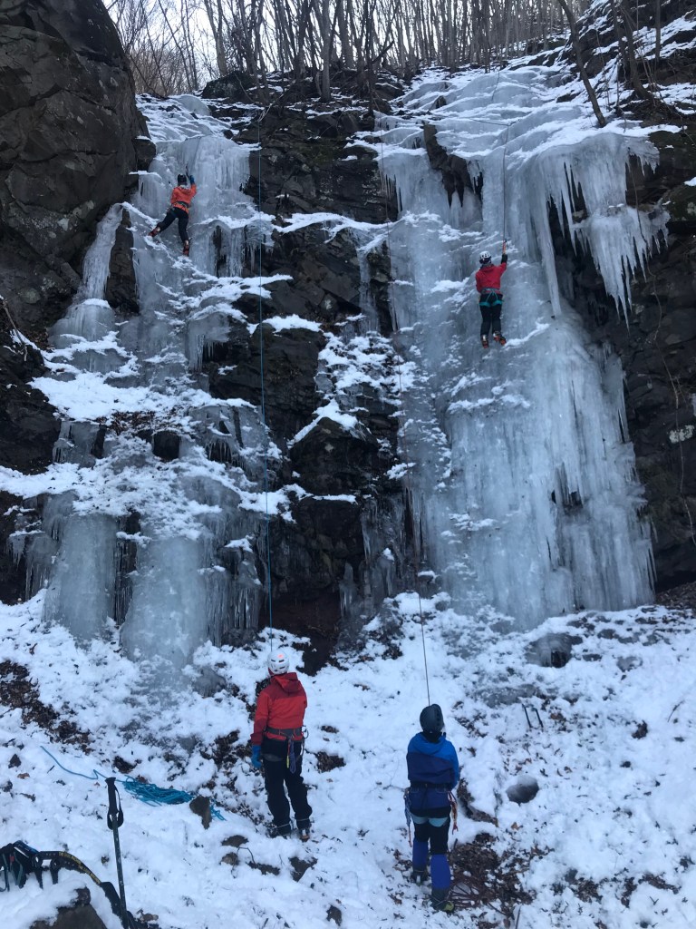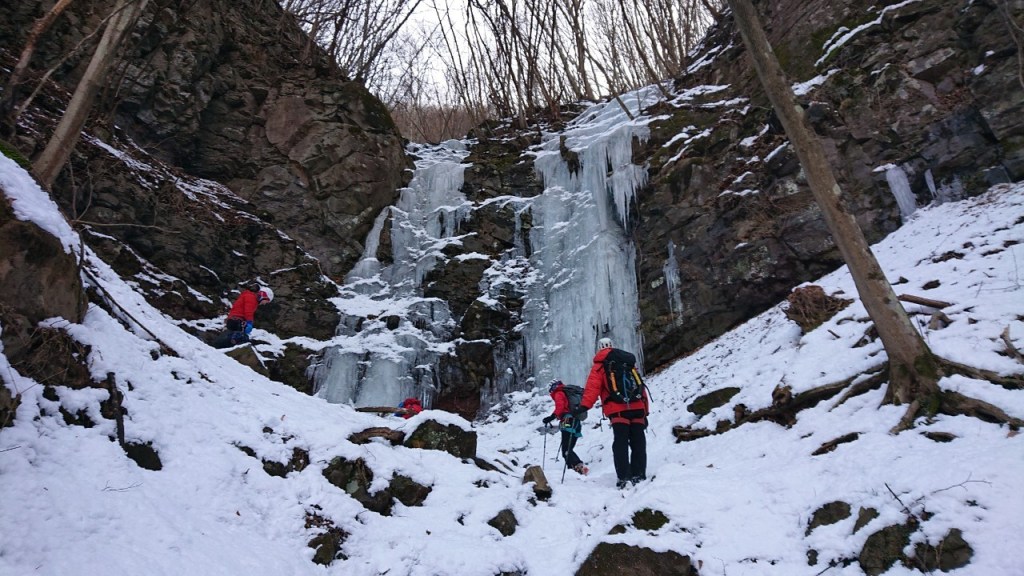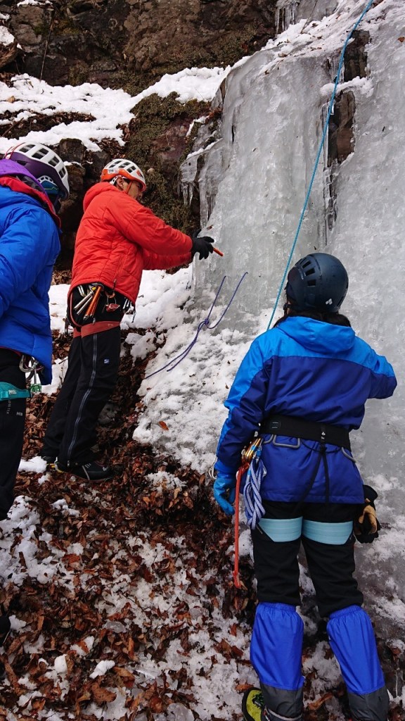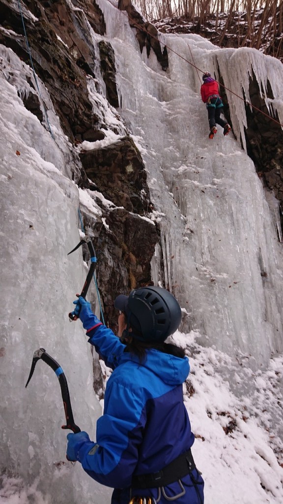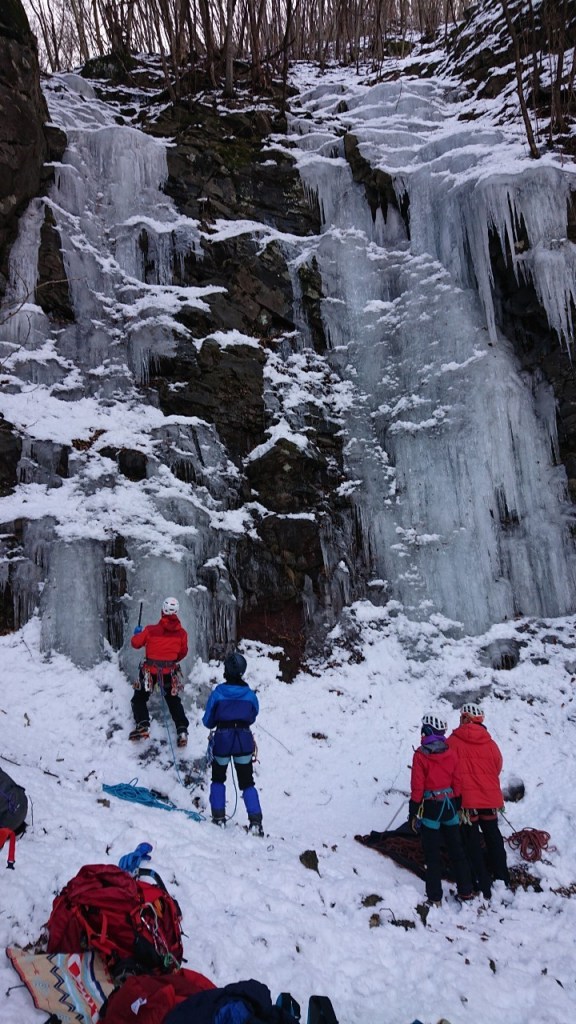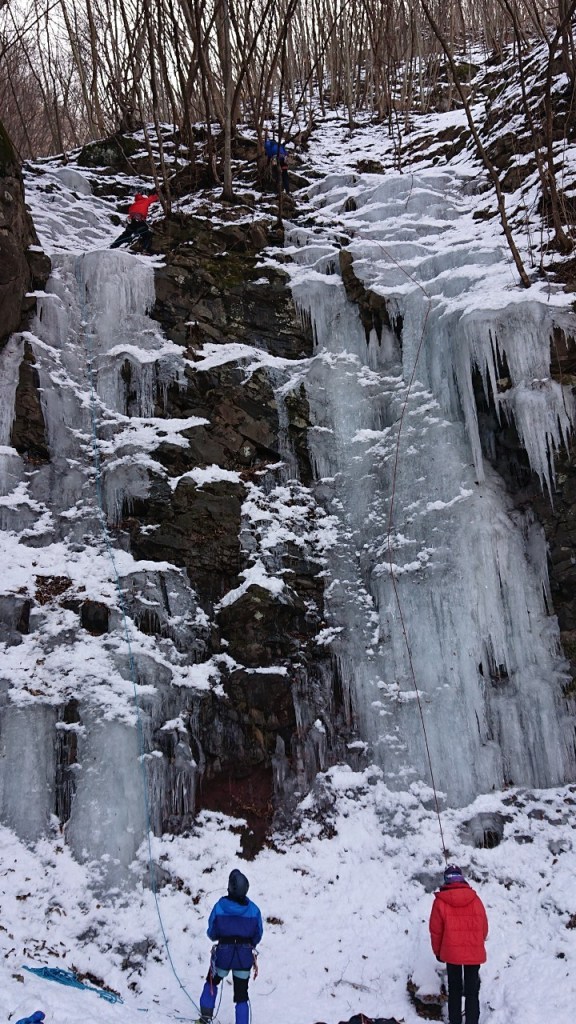 (山宮)土曜も日曜も気温が高いので氷のコンディションはどうかな?と心配しましたが朝からお昼ごろまでは問題なく登れました。(お昼近くにはもう水っぽい感じになってましたが・・・。)1本リードした後にトップロープで2本ぐらい登ったらもう飽きてしまいました(笑)その後、中央の岩を使ってミックスとか3本連続とか氷柱を意識しての片足登りとか何本も登ってみましたがやっぱり飽き飽きしてました(笑)