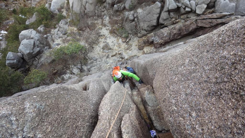 ・このピッチは出だしの岩が崩壊したらしくスタートがハングしていてトポのグレードⅣより難しくなっているとのこと。