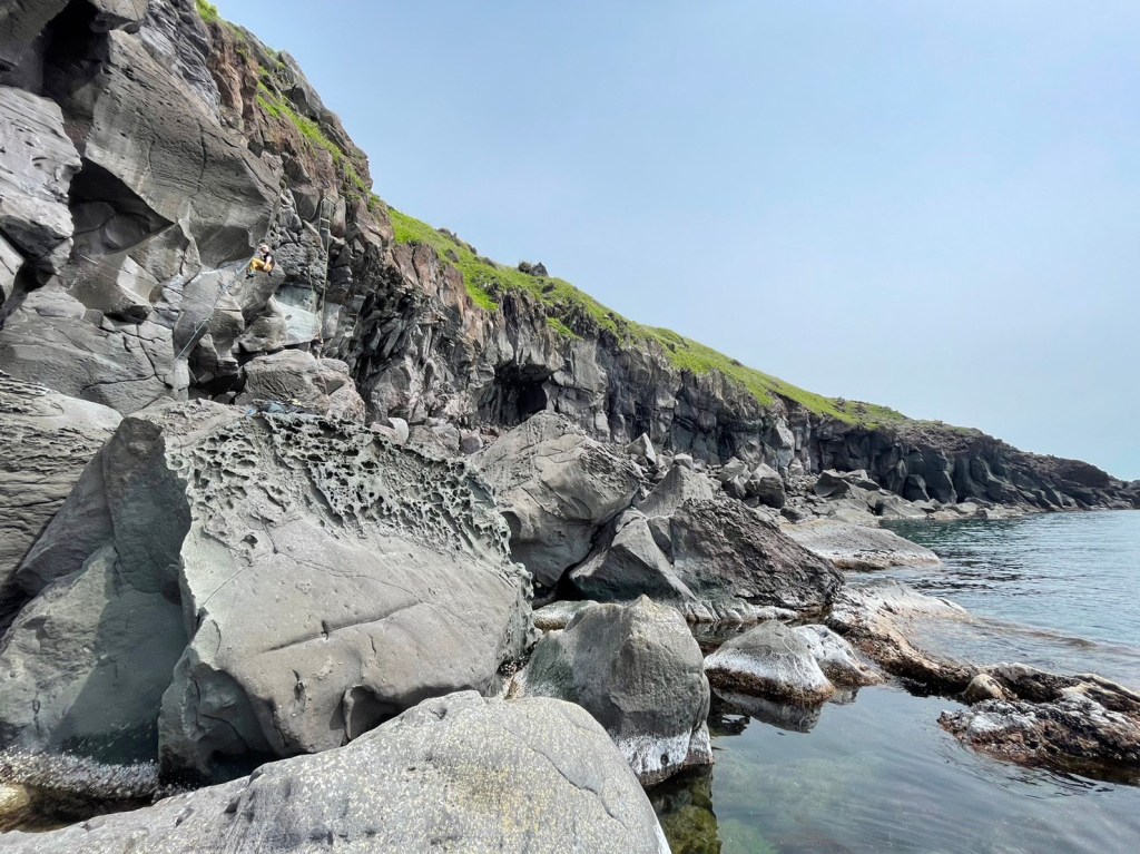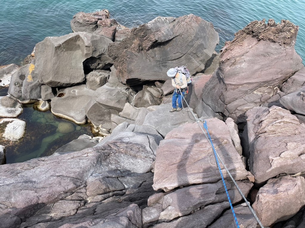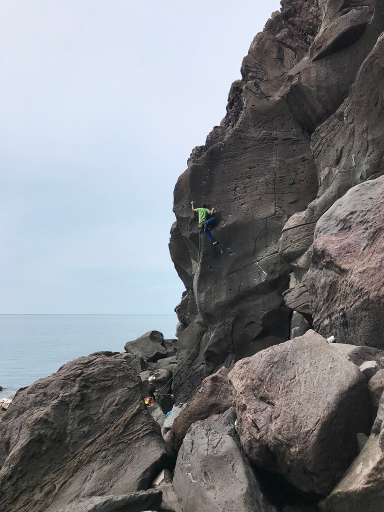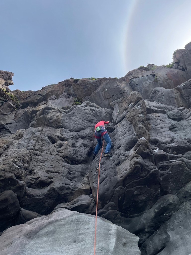 ★支点について:今回登った、白鳥~ほら貝までの支点はケミカルアンカーにリボルトされてました。その他(全部は確認してませんが・・)は錆びたハンガーでした。終了点にはラッペルリングがありますが残置ビナが無いのでロワーダウンするにはロープの結び替えをする必要があります。