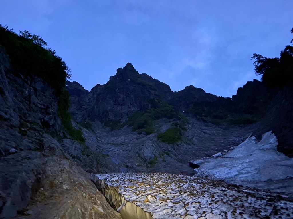 ★ルート:谷川ベースプラザ→一ノ倉沢出合→(一ノ倉沢の雪渓を登る)→テールリッジ基部→(テールリッジを登る)→中央稜取付→(中央稜を登攀)→衝立の頭→(北稜下降)→ピナクル→略奪点→(衝立前沢を下る)→衝立前沢出合 →(一ノ倉沢の雪渓を下る) →一ノ倉沢出合→谷川ベースプラザ