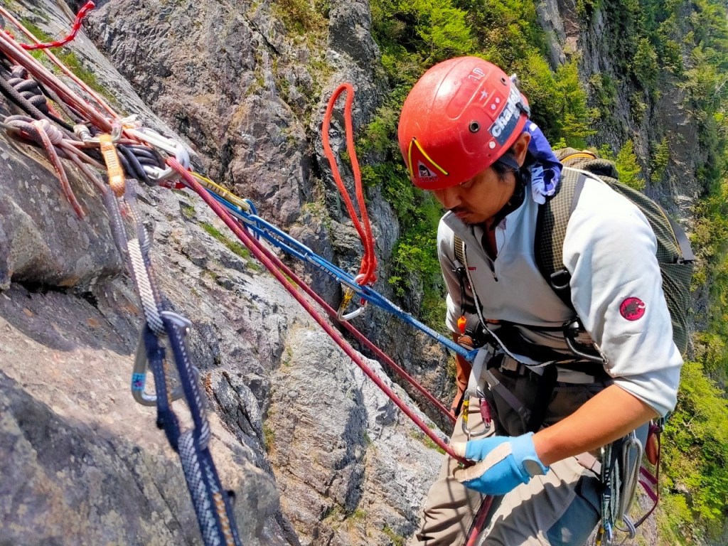 (吉川)登りは浮石を落とさないように落ち着いて状態を確認しながら楽しく登れました。下降の際ロープがスタックしていることがうまく伝わらなかったので、トランシーバーによる意思疎通の練習も会として取り入れるのもアリかなと思いました。