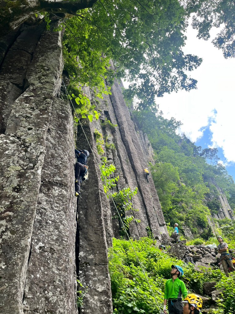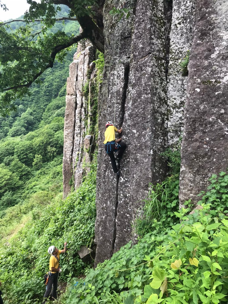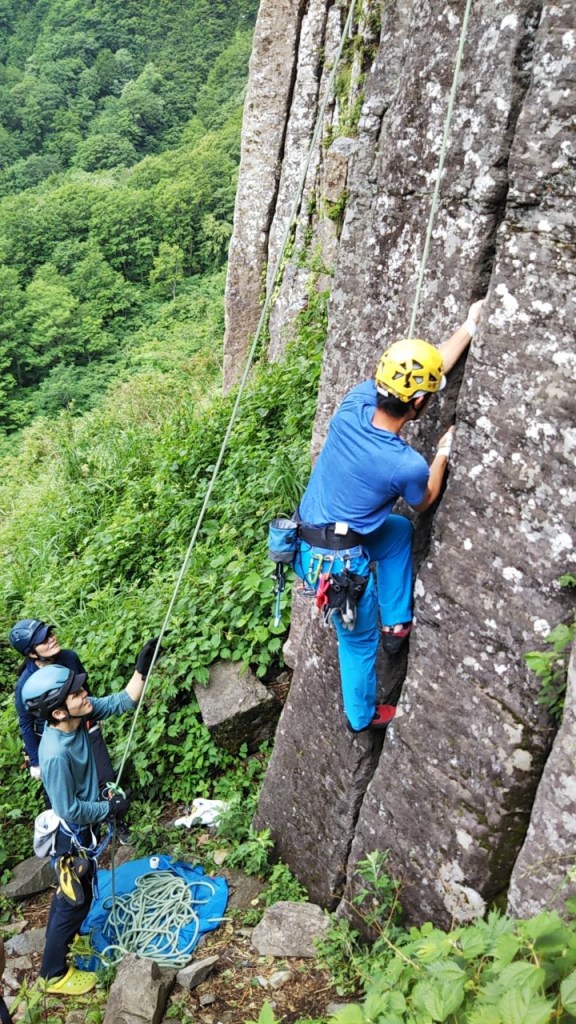 (米山)初クラックでしたが丁寧なご指導とTR支点作成のお陰で色々なルートを経験させていただきました。ありがとうございました。クラック幅に応じて多様なジャミングがあり習っても上手く使えないことも多々ありましたが、きれいに決まると驚くほど固定されるものですね。逆に抜けずに焦ることもありますが・・・。フェイスで経験の無い感覚だったこともあり新鮮で楽しかったです。クライミングの幅を広げられた感じがします。また機会あればよろしくお願いします。