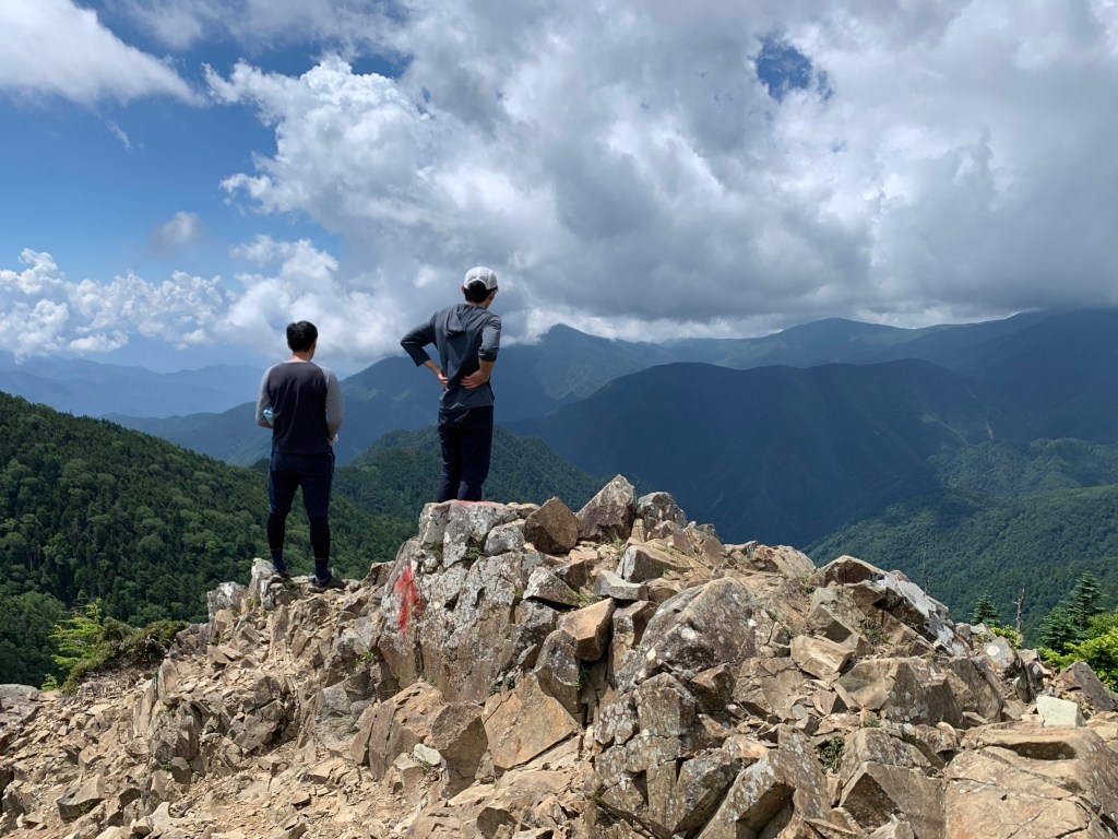 (神蔵)「初級」とはいえ沢登りは侮れないのでしっかり武装して出発(わたしだけ…)。初日は両門ノ滝まで見どころが続き楽しく遡行。泊地(標高1700m付近)には14時半に到着し明るく快適な幕営地でのんびり過ごせました。2日目は黙々と詰めて甲武信小屋でひと息。笛吹川源流の水でパワーを注入した後ひと登りして山頂へ。2日間遡行してきた谷と奥秩父の深く美しい緑を眼下に感慨に浸る贅沢な時間でした。このルートがある事を知ったのは随分前のことなのですが自分に辿れる日が来るとは思っていなかったので今回この機会を作ってもらったのは感謝でした。思い出に残る山旅になりました。