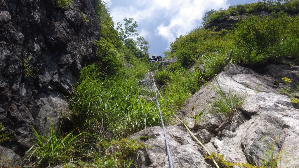 クライミングは快適に登れましたが、事前に聞いていた通りに脆い岩が多く、気を使う場面が多かったです。最終ピッチは私のリードでしたが、終了点が分からず、ロープの残りが不安だったので適当な木で終了点を作りピッチを切りました。実際はその僅か5mほど上に終了点があり、トポをよく理解していれば余計な時間を掛ける必要はなかったと反省しています。降下路は計10回の懸垂下降を要しましたが、ロープの扱いに不手際が多く、何度もロープを絡ませたりキンクさせてしまいました。テールリッジから一ノ倉沢出会いまでの復路では山宮さんに遅れてしまい、何度も待たせてしまいました。総じてこれから覚えるべき事が多いと感じました。これからどんどんアルパインクライミングに挑戦し、技術、体力共に向上させていこうと思います!ありがとうございました!