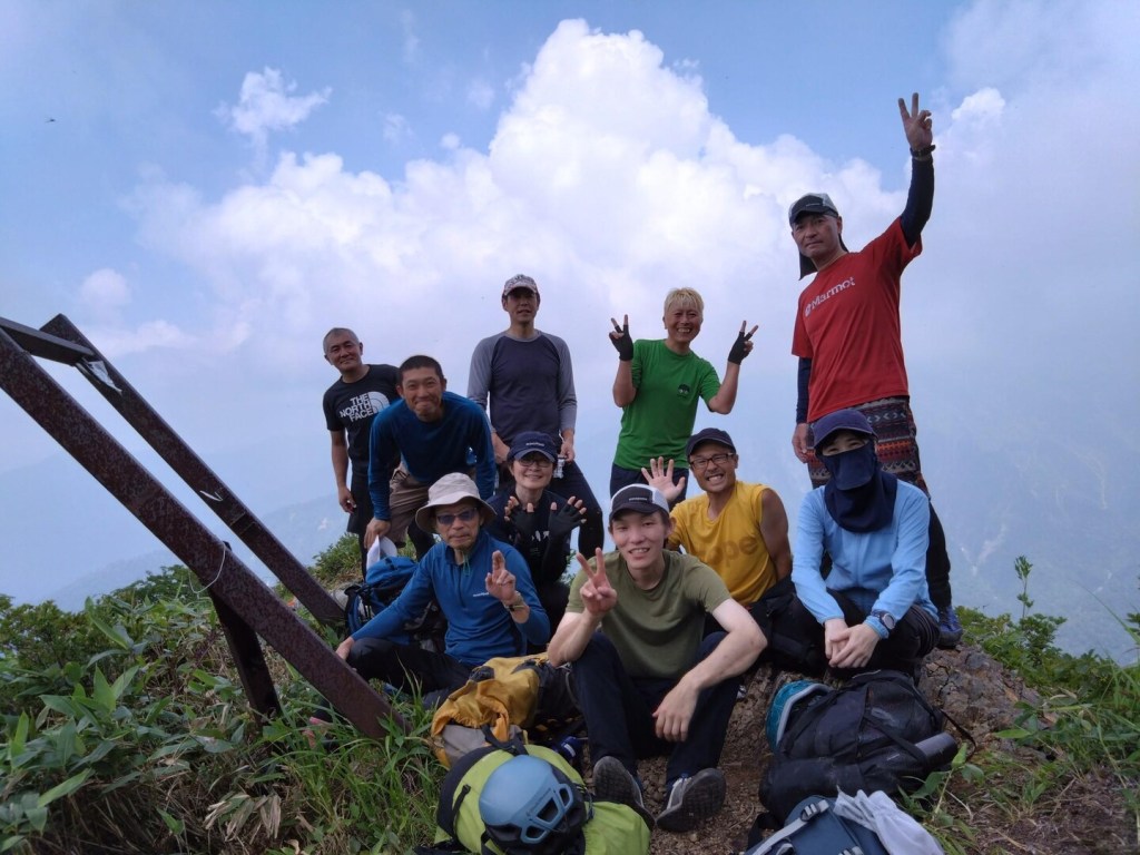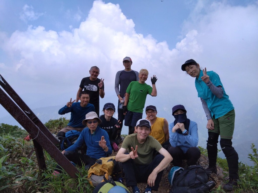 (竹内)3年前雨で敗退したので成功して良かったです。ロープは、ほとんど使用せず、皆さんがドンドン行くので成長を感じました。11人も参加したのに午後1時半稜線、下山3時半でした。只、私は下山で膝が厳しく皆さんに迷惑かけました。満リーダーご苦労様でした。
