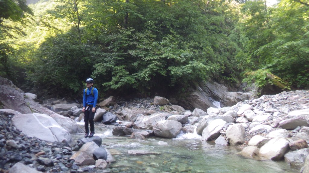 (岸畑)オキドウキョは水量が少なく水流も弱く簡単だった。数年前の水害の時の土砂がまだ埋まっていて沢床が浅いのが原因か?