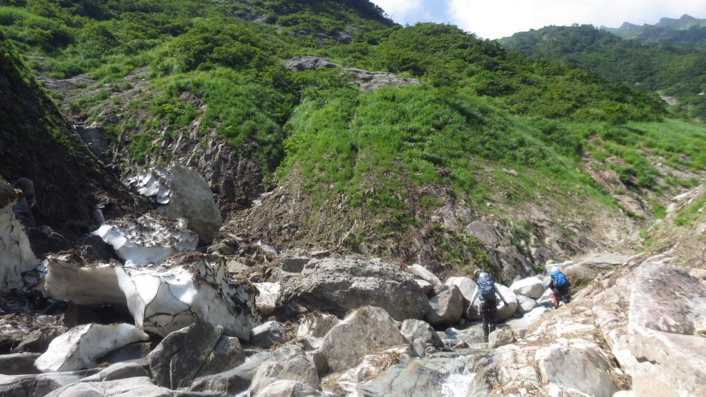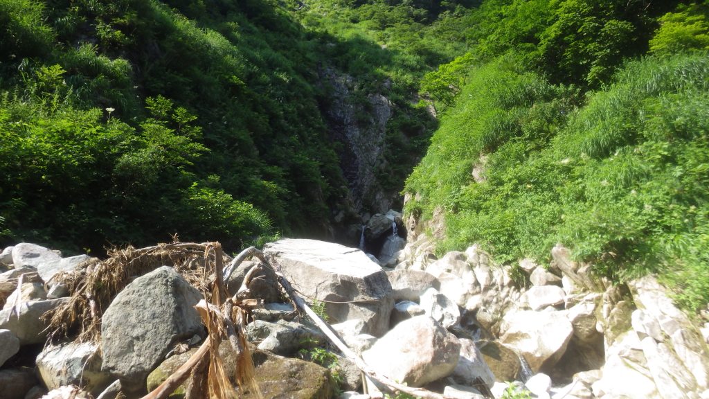 ・障子沢との二俣に少し残雪渓が転がってましたが登攀には問題ありませんでした。