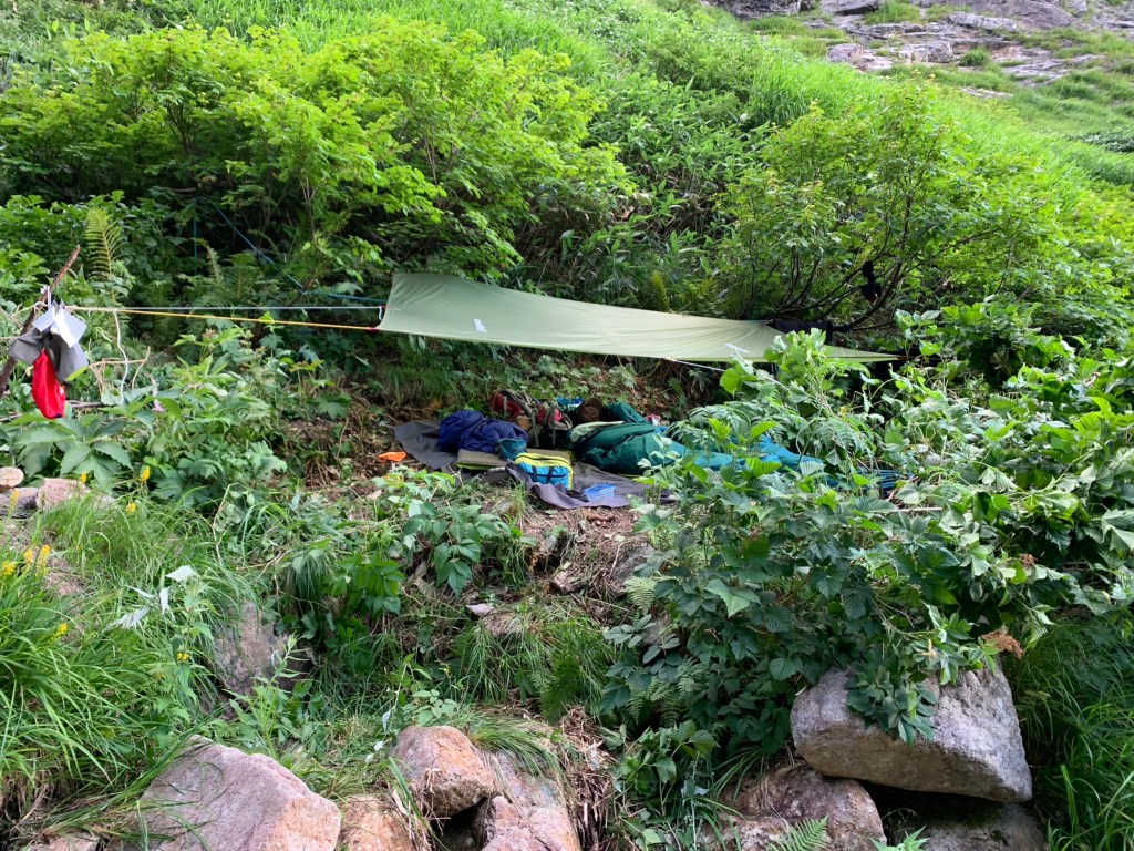 ・二俣を過ぎてからは快適なビバーク適地はなし。(今回は無理やり整地してビバーク。)