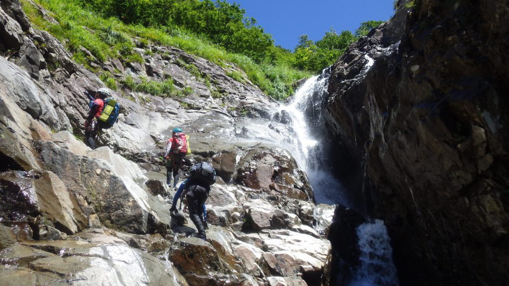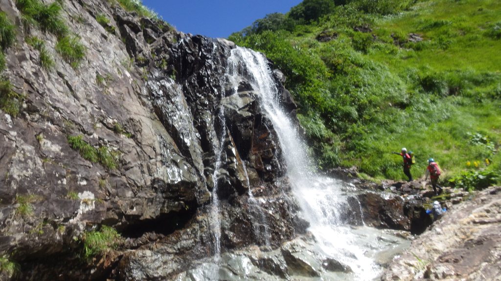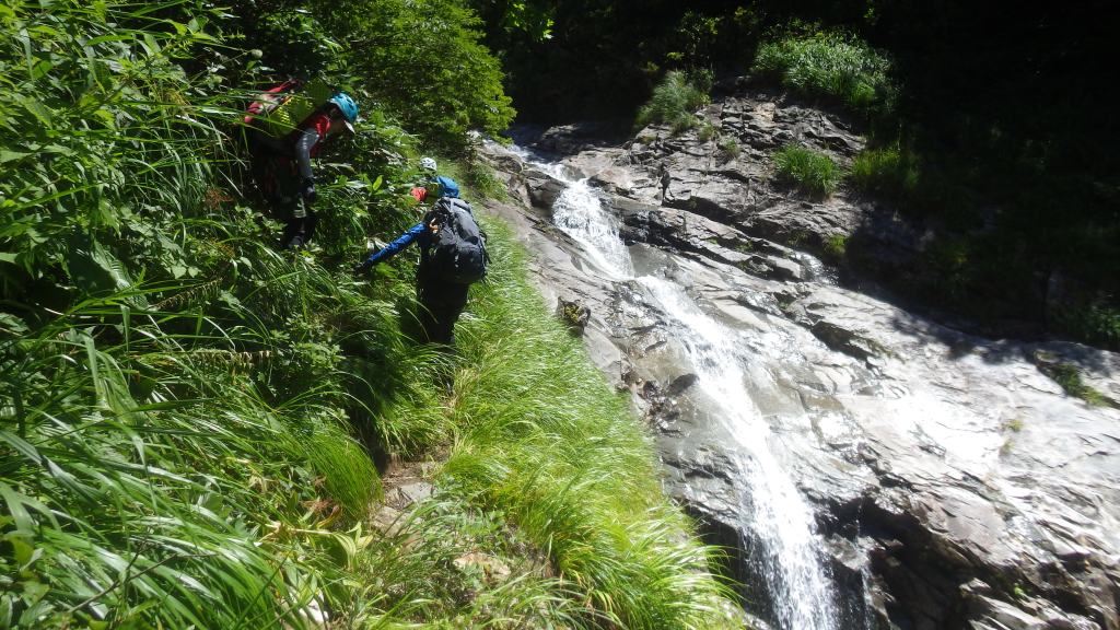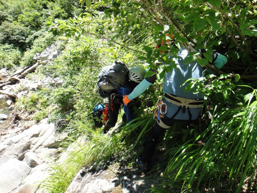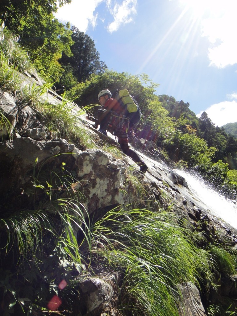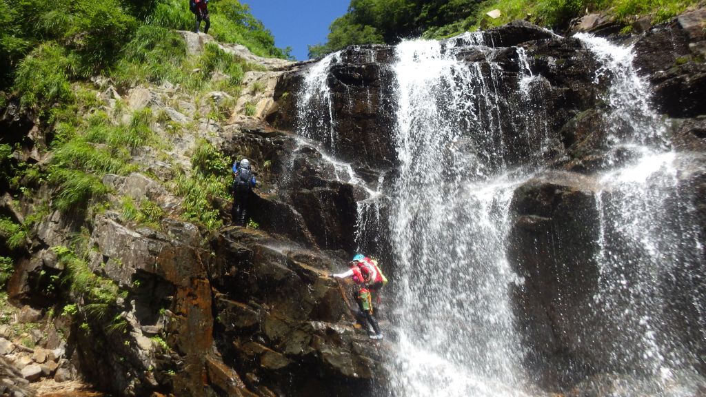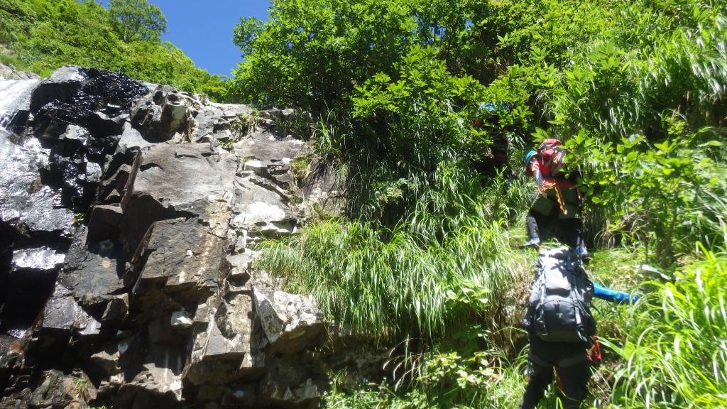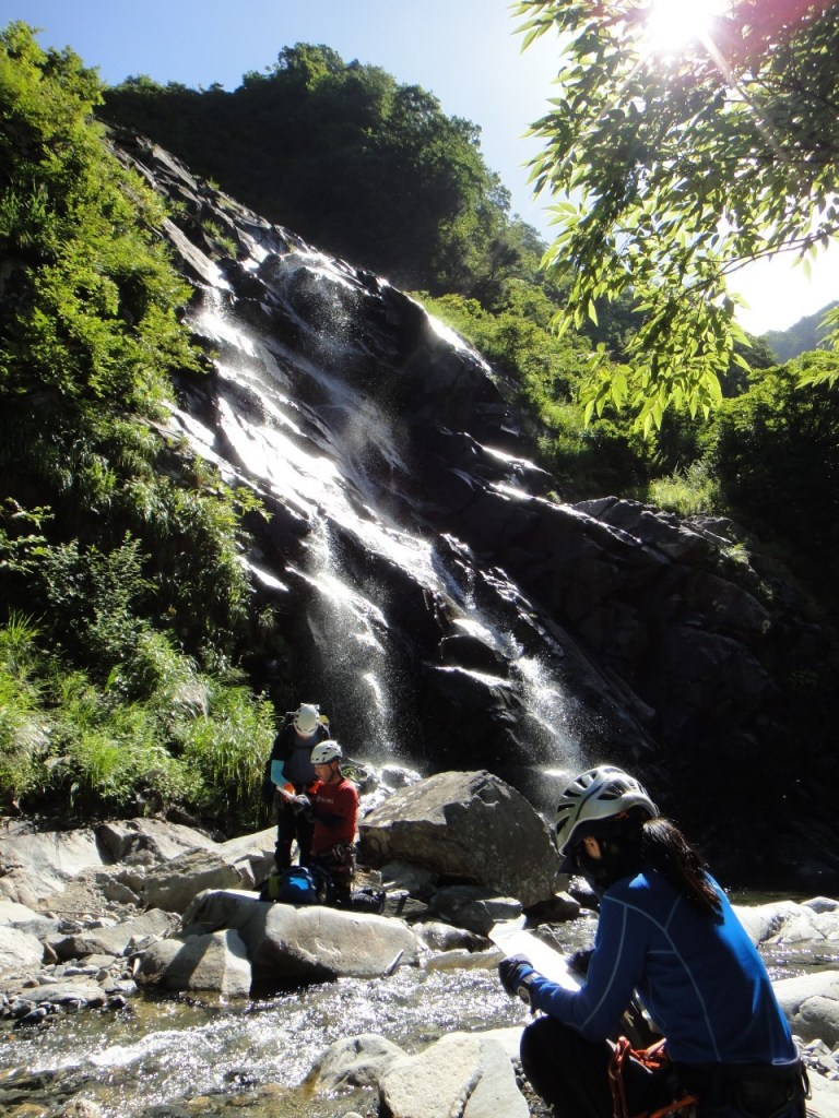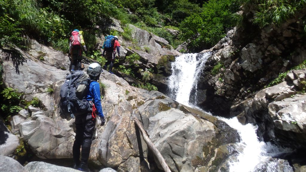 ・抱返りの滝でロープを出しました。(進藤みがフリーで登った後に神蔵がロープを出して欲しいとのことだったのでロープを持っていた山宮が次にフリーで登る。ロープを上から投げても登ってくる方向にいかなそうだったので中間でザックからロープを出し上の進藤みへ投げ、ロープをセット完了後山宮に投げ下し、山宮から登ってくる方向へ投げ下した。