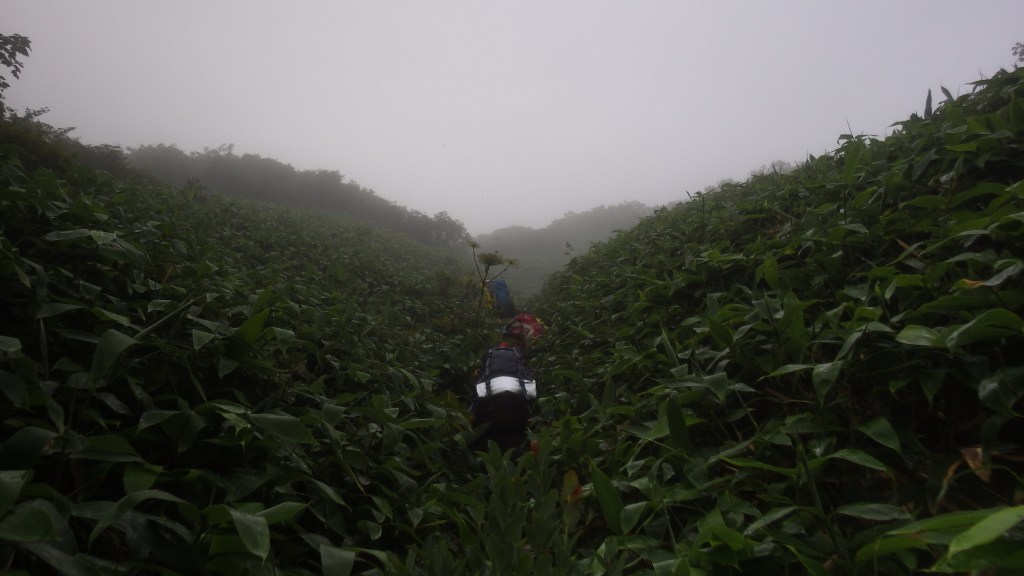 (神蔵)初めて中級泊まり沢に挑戦。早々に何ともないゴーロ歩きで荷物に振られ転倒したので、これは不安があったら強がらずロープを出してもらおうと改めて決意。序盤の見返りの滝上部で早速ロープを出してもらう。さすが3人は平然と登っていたけど過去の記録を見ると巻いている人がほとんどなのでわたしの感覚が普通だと思う…。その先も何ヶ所かで足場やお助け紐などフォローしてもらいながら順調に進みそろそろ幕営地、のはずがなかなか適地が見つからずまさかのビバークに。それでも何とかタープを張るスペースは確保し無事に朝を迎えることができた(←大袈裟)。2日目朝、ガスの朝日岳は寒いくらいでそこからは快適な登山道歩き。標高を下げると眺望もきいてきた。白毛門から臨む谷川のパノラマは圧巻で結局今回の山行のクライマックスは自分的にはここだったかもしれない、最後に全部持っていかれた。沢山あるアルパインルートをアレコレ教えてもらいながら楽しく下山。収穫の多い「山の日山行」になった。この度は飛び入りでしたが参加させてもらい本当にありがとうございました。