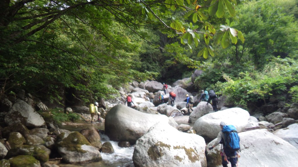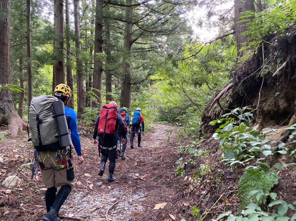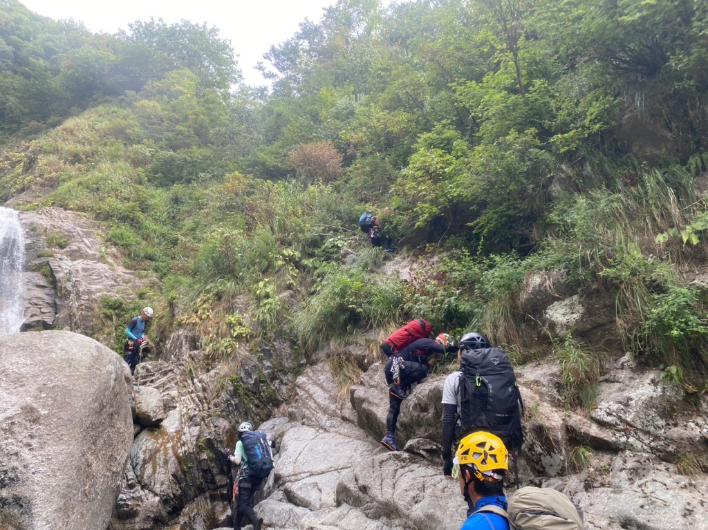 (神蔵)湯檜曽川本谷での教訓を活かしザックを縦走用からアルパイン用に変更。縦走用のザックだと水に浸かると荷物がずっしり重くなり思うように動けず辛かったのが劇的に解消!これまでより快適安全に遡行できました。今回の山行は不安要素の全てが良い方向に転がりこれ以上ない条件で本当にラッキーでした。人数が多い故の実力差も皆で弱い部分を補い合い互いを気遣いながら進んだ結果がスムーズな遡行に繋がったと思います。そして何よりリーダーの事前の計画と周到な段取り、ベテラン勢のルートの見極めとペース配分、登攀力にロープワーク、遡行中の指示出しやポイントでの親切丁寧なアドバイス等…それらの全てが迅速的確でまるでガイドの接待を受けているようでした。大人数にもかからわずトラブルなく全員そろって笑顔で解散できたのはチームワーク力の高さなのだろうと思います。ワイワイ楽しい2日間でした。皆さまありがとうございました。