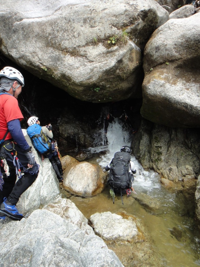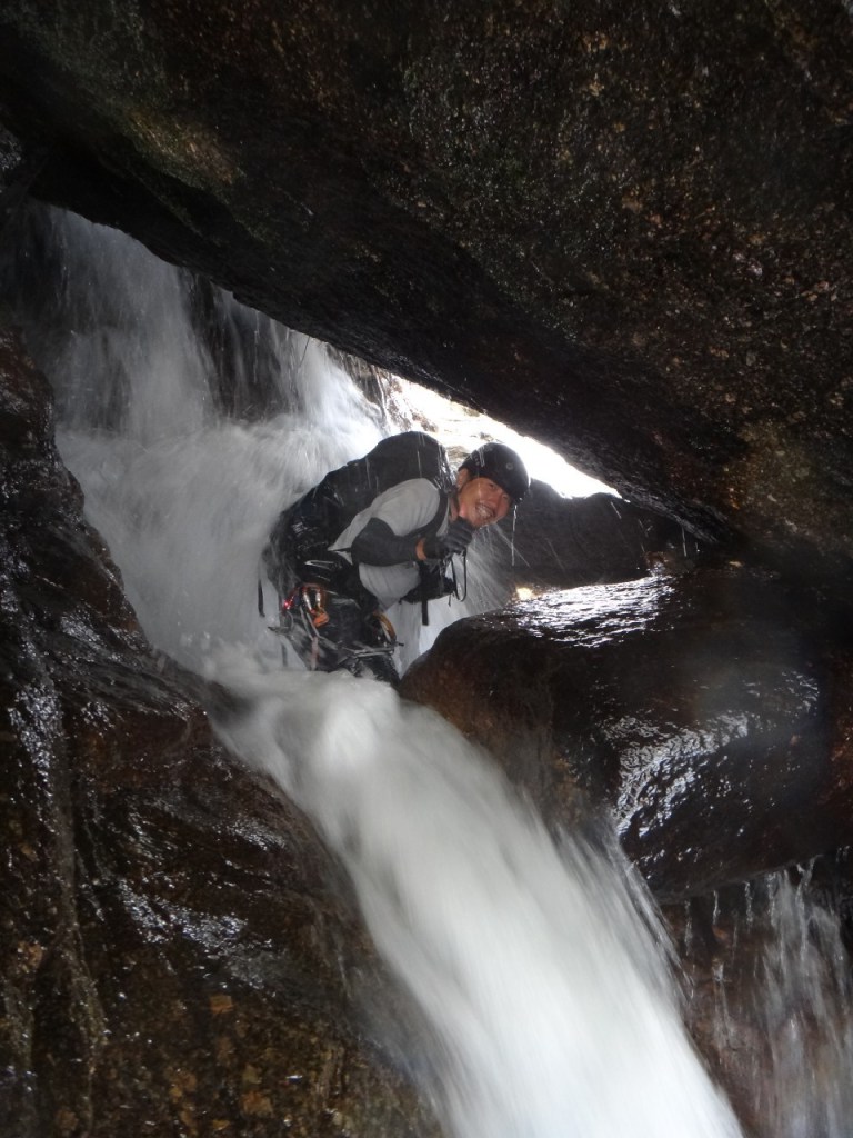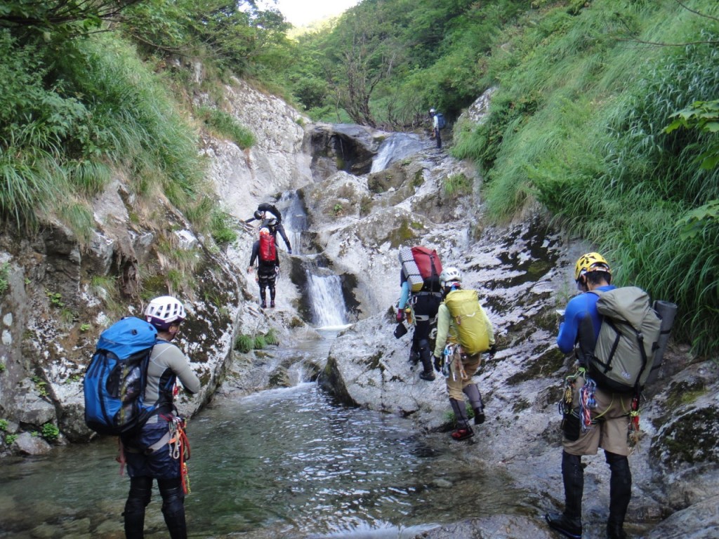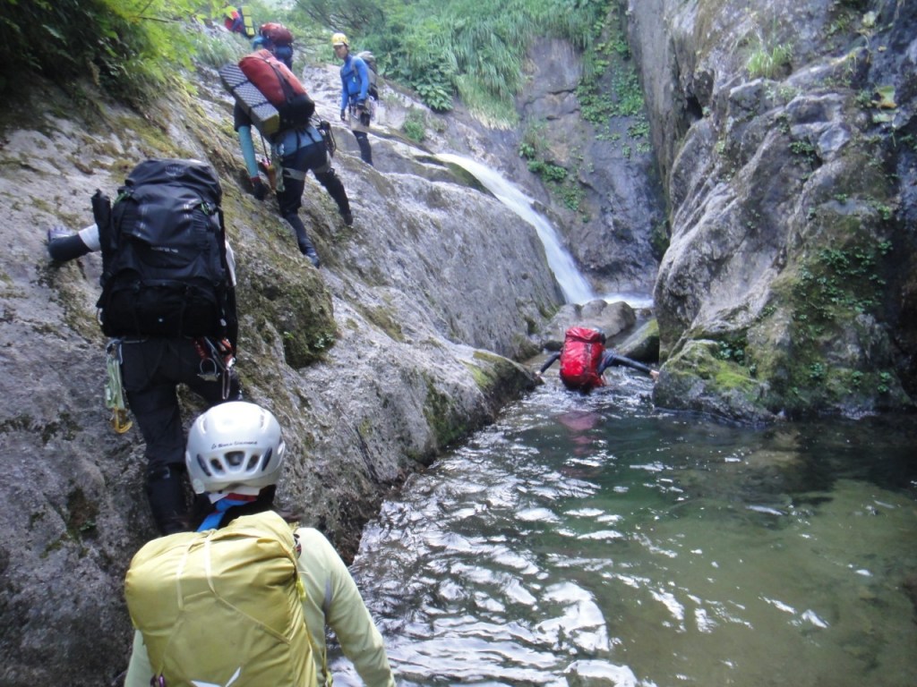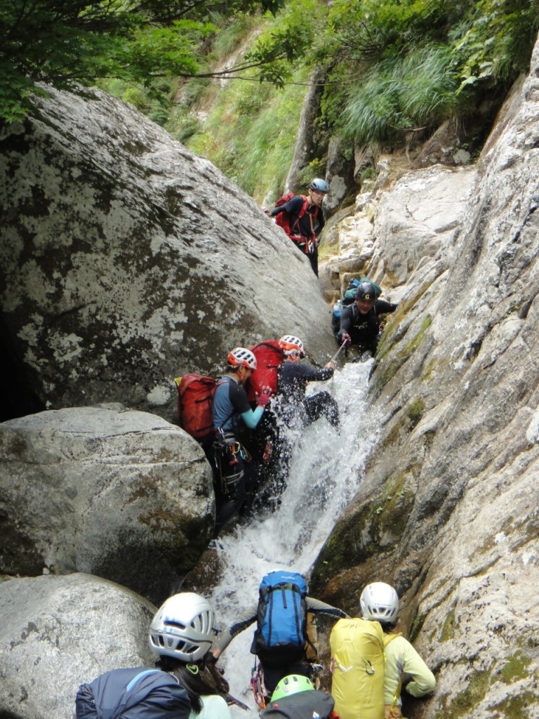 (羽田)中級の沢という事で体力の消耗を少なく軽量化にしましたが、サクッと登れない所などアドバイスを貰ったり安全に楽に行けるようにスリングをかけてもらったりしながら沢の醍醐味を味わった二日間でした。総合力が必要な沢を楽しむ為にも体力と技術の向上が益々必要だと思いました。