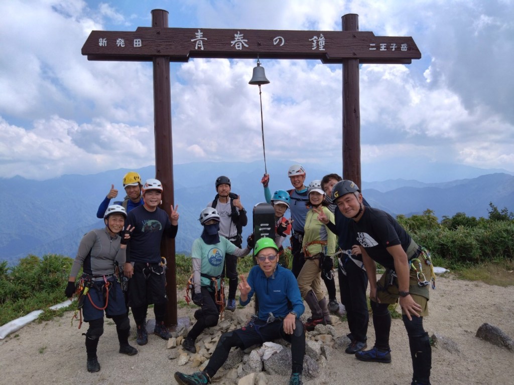 (竹内)①今回で3回目遡行でした。1回目はただ楽しく岩魚を手づかみした。2回目は石附さんと。②七滝の右高巻きはナタメから左に下降する道がついており迷う事がなかった。前は上まで行って何回も高巻きして下降。③(テント)場はもっと広い場所と錯覚し、人の記憶【私の】は当てにならないと反省。④左壁登攀の山宮会長の2段階確保技術、満リーダー、岸畑さんのルートファインデングは素晴らしかった。私はついて行くのが精一杯。⑤取水口手前の二俣は右二本木山【水多い】左二王子岳で【枯沢】で間違いやすいがまり子さんが左に誘導して正解だった。私の最初の遡行では間違って二本木山へ。⑥登りは何とかついていきましたが二王子岳からの下りで足が動かず皆さんに大変ご迷惑をかけました。荷物等も岸畑、荒木、阿部さんに持ってもらいました。泊まり山行や泊まり沢登りはソロソロ引退です。参加者の皆さん大変ありがとうございました。