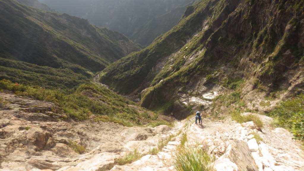 ・中ノ大滝30mは滝左の凹角をフリーで登りました。