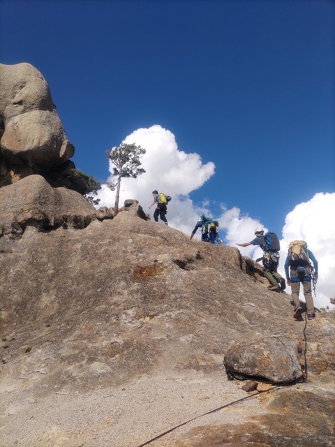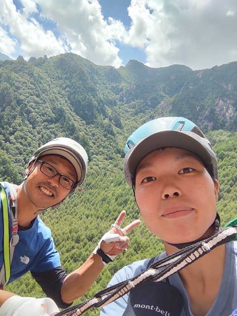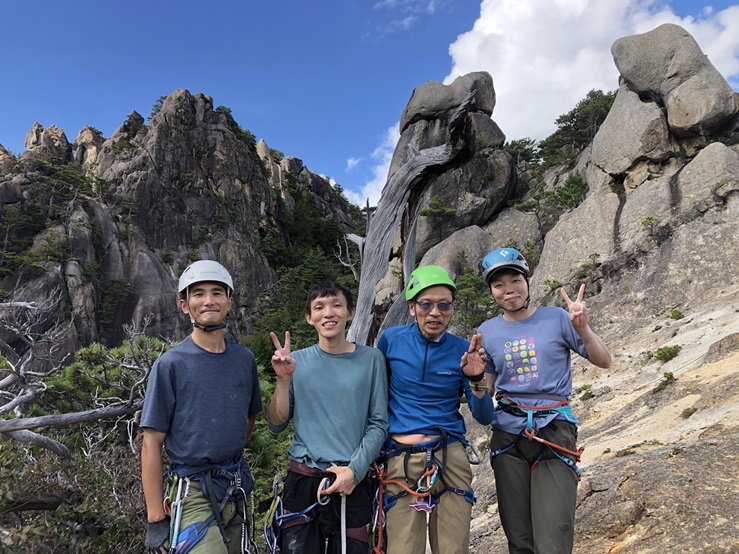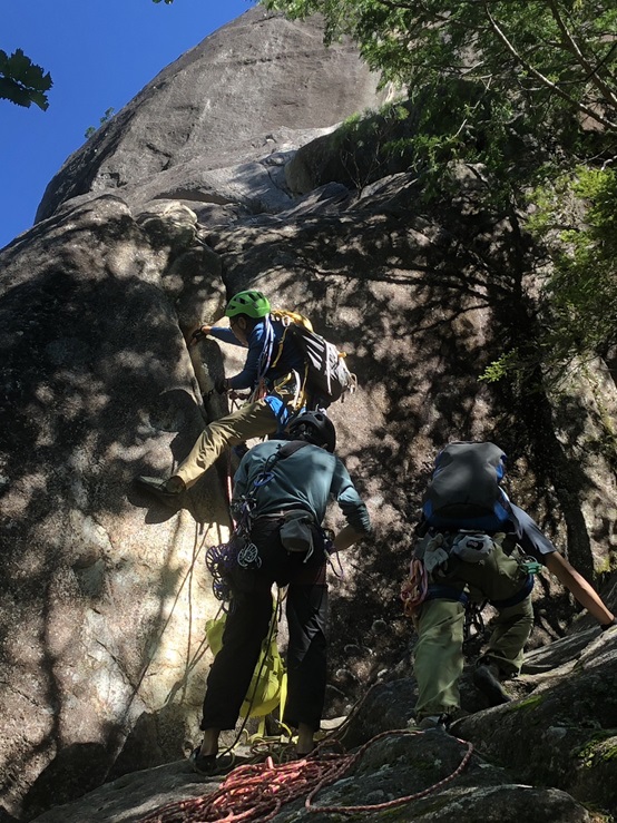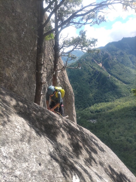 (吉川)セレクションは1-2ピッチを繋げて登りましたがダイヤモンドスラブのランアウトにびびってテンションしちゃいました。スラブ苦手ならピッチ切って近くでビレイしてもらったほうが怖くないかもです。4ピッチ目の終了点とトラバース地点が分かりにいです。行き過ぎてしまいクライムダウンが緊張しました。後続の岸畑さんから教えてもらいなんとか無事に完登できました。内容が素晴らしく人気ルートな理由が分かりました。竹内リーダーありがとうございました。