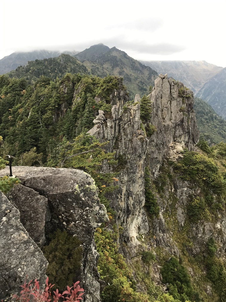 烏帽子岩が錫杖岳ではないのではないかと考えとりあえず中央稜を超えて向こう側へ下りるために左へトラバースする