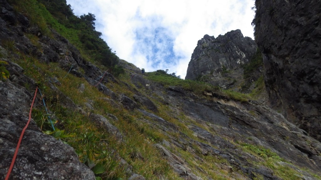 7P 草付を左へトラバース 40m Ⅱ程度(岸畑リード)