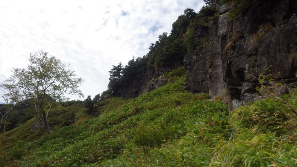 ・草付というよりは灌木帯。落ちはしないという安心感はありますが藪漕ぎは大変でした。