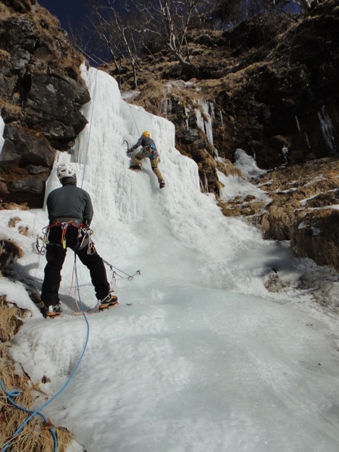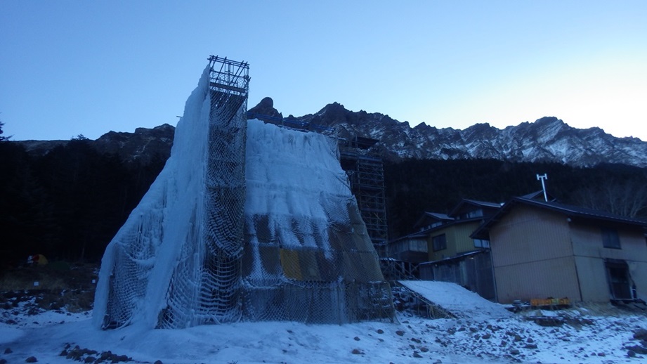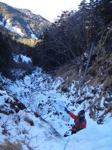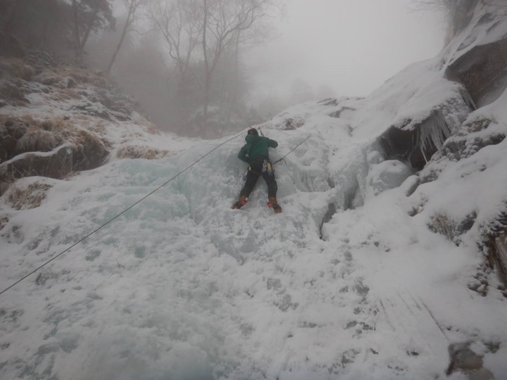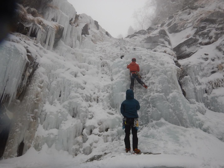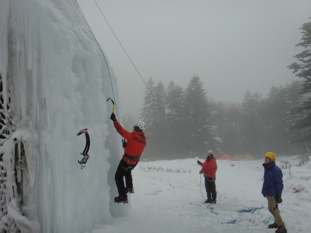 (進藤み)1日目は全員でジョウゴ沢アイスの予定でしたが2日目の天気が悪い予報だったので2日目の予定と入れ替えたため進藤(み)(ま)と宮崎さんの3人で宮崎さんの初アイスを楽しんで貰うため裏同心ルンゼへ行きました。F1で少しレクチャーしその後、即実践で宮崎さんには中間八の字で登ってもらいました。動画でもあげてありますが、勿論ぎこちなさもありますが大変良く登れていたと思います。F2でTRと思いましたが50mシングルではTRが張りづらく辞めて右岸にあった氷瀑でTRを張り3人でクタクタになるまで楽しみました♪2日目は予報どおり天気が良くなくアイスキャンディで進藤(み)(ま)宮崎さん、途中から山宮さんの4名で遊び、特に進藤(み)と山宮さん2名で宮崎さんへの厳しい指導もあり宮崎さんはヘトヘトだったと思います(笑)今シーズン3回目のアイスでしたが少しずつ感覚も思い出してきたし何よりも日帰りでなく小屋泊だったので快適すぎてやめられないです♪アイスゲレンデ楽しすぎでした。皆さんもチャンスがあれば是非とも参加して楽しみましょう。