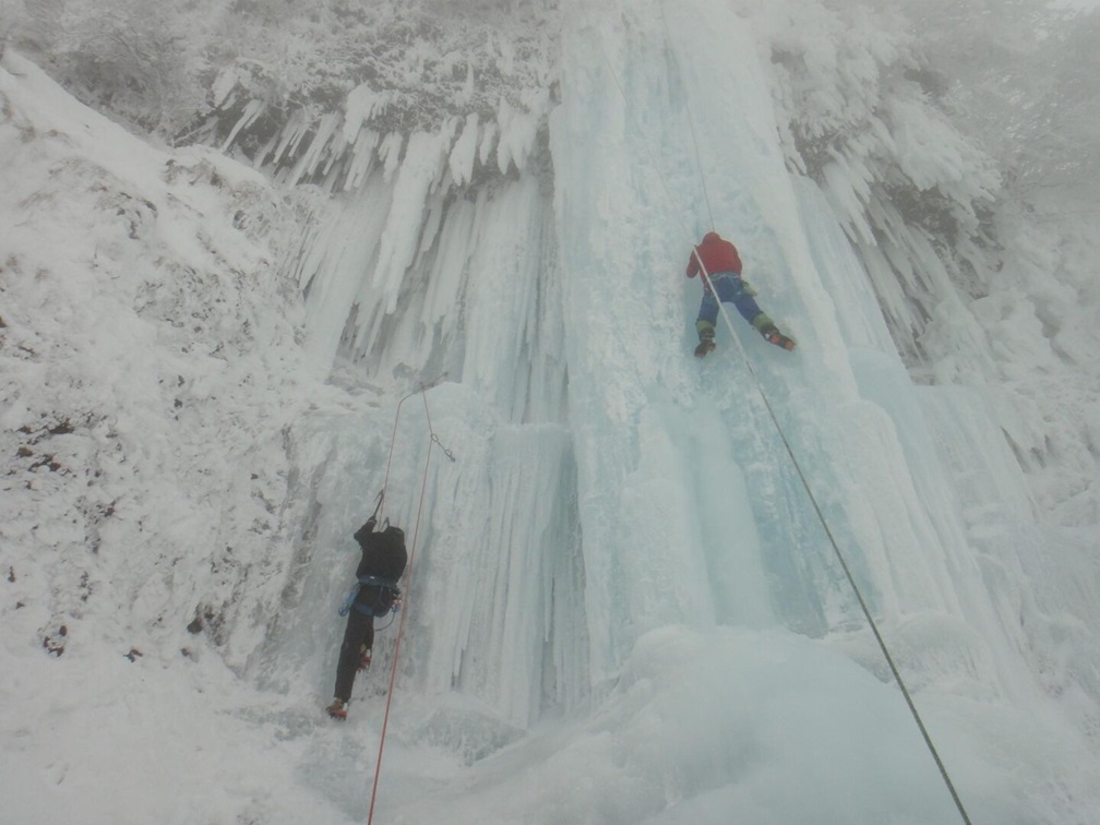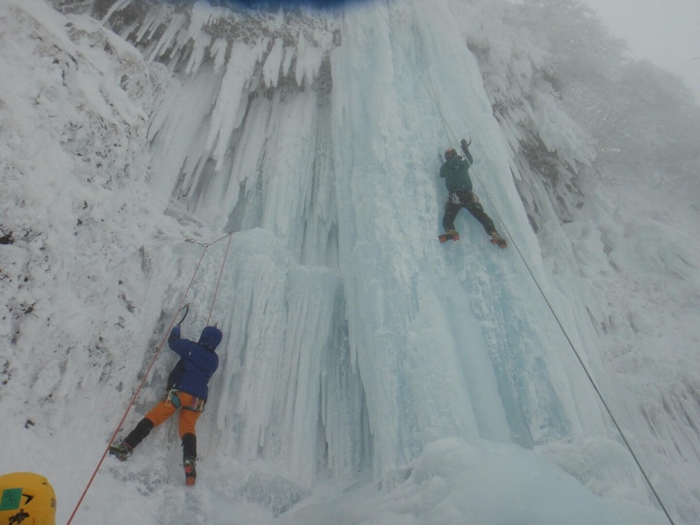 (荒木)昨年末の八ヶ岳に続き、今回は2度目のアイスクライミングでした。ミニ氷柱(TR)の1本目はつい腕に頼ってしまい、すぐにパンプしてしまいました。結局、1度テンションをもらった上に、結構な時間を掛けてしまいました…1本目を終え、より効率の良い登り方を教えて頂いた後の2本目は、1本目よりもずっと効率の良い登り方ができました。とはいえ、まだまだ余計に力んでいる感があり、足もちゃんと効いているのか分からない状態で騙し騙し登っている状態なのが現状です。これからアイスのシーズンに入るということなので、登れる機会になるべく多く登りたいと思います。