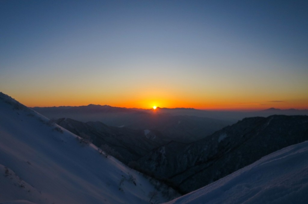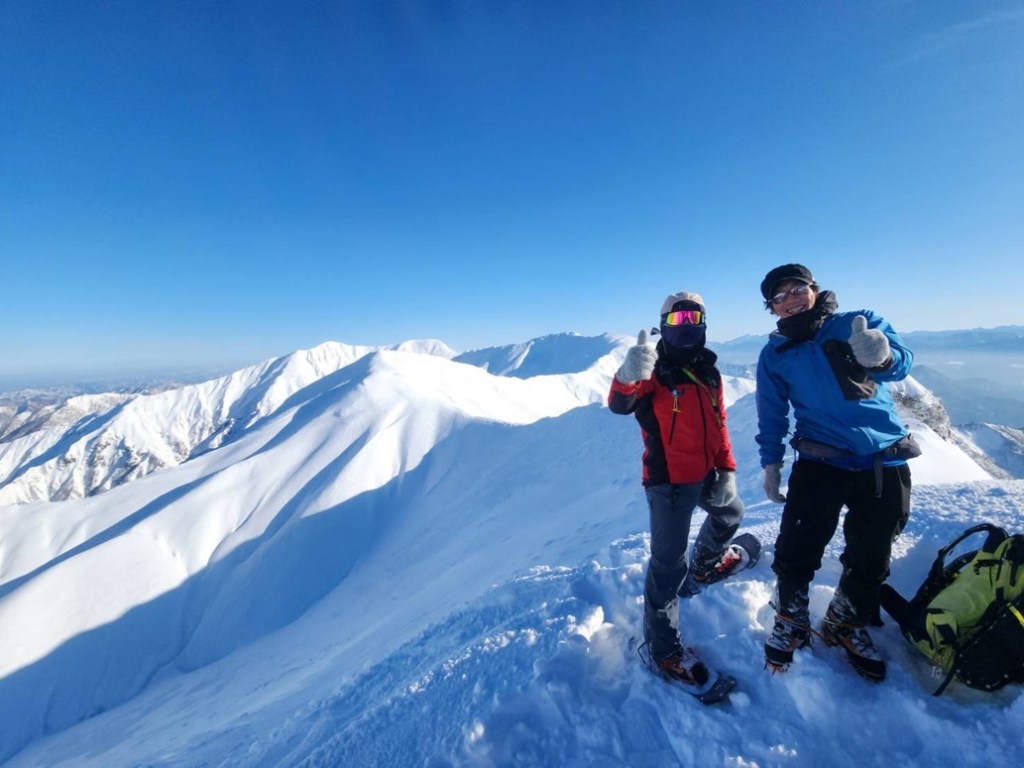 (植木)長年保管していたスノーシューを初めて使用してみて登坂力に驚きましたが、前半の登りで劣化のため数本バンドが切れ使用不可に。その後はワカンとアイゼンを使い分けましたが負荷が増大し、今更ですがスノーシューの素晴らしさを知りました。景色は土田さんの写真にあるように感動の連続でした!