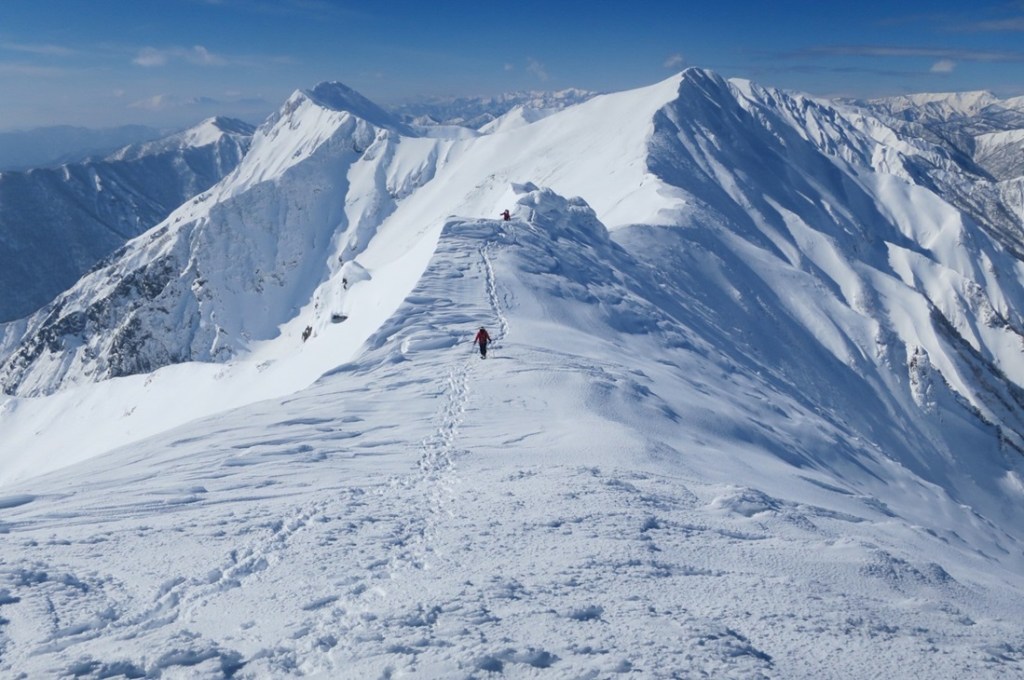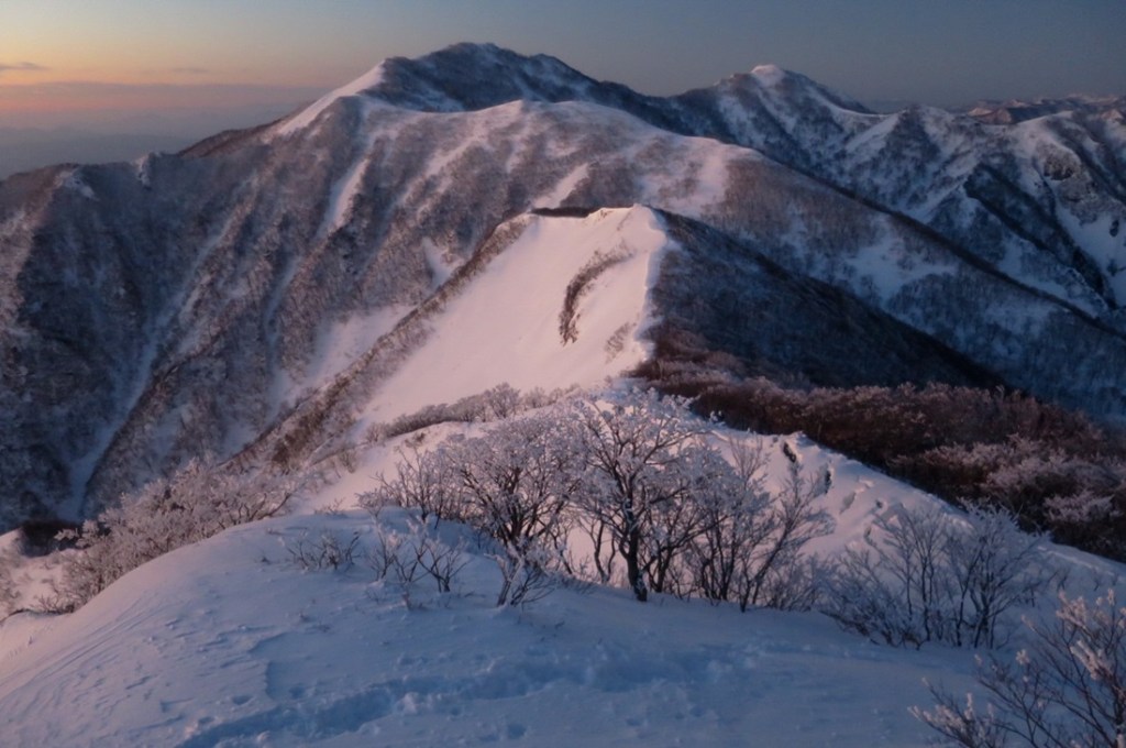 (土田貴)これまで休みと天候のタイミング、積雪のコンディションなど等でなかなか厳冬期の俎グラに届きませんでした。今回3年越しにようやく登頂することができました。見慣れた谷川主稜線でしたが、俎嵓から目に飛び込んでくる別世界の風景には感動の連続でした。オジカ沢ノ頭から眺める俎グラの曲線稜線は美しくも怖いイメージでしたが、実際歩いてみたら楽しいの一言。私は踏み抜きを嫌ってスノーシューで突破しましたがアイゼンが安全です。また、今回土曜日深夜行軍ということもあり植木さんは一睡もできず参戦。。車2台で計画を組めたことでピストンではなく一気に稜線を抜けることができたので、都合を合わせてくれた植木さんには感謝!!